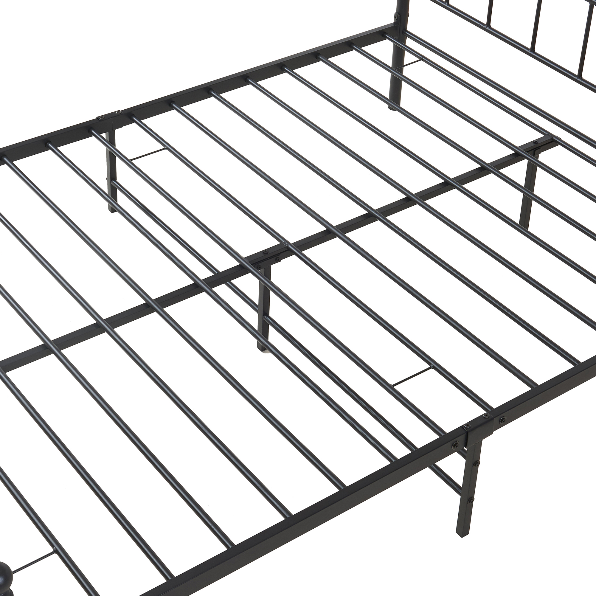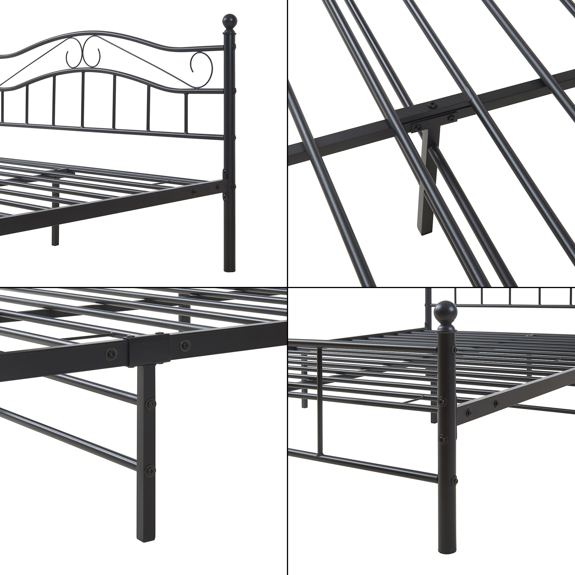 - Pat metalic negru 140x200 cu design elegant și versatil