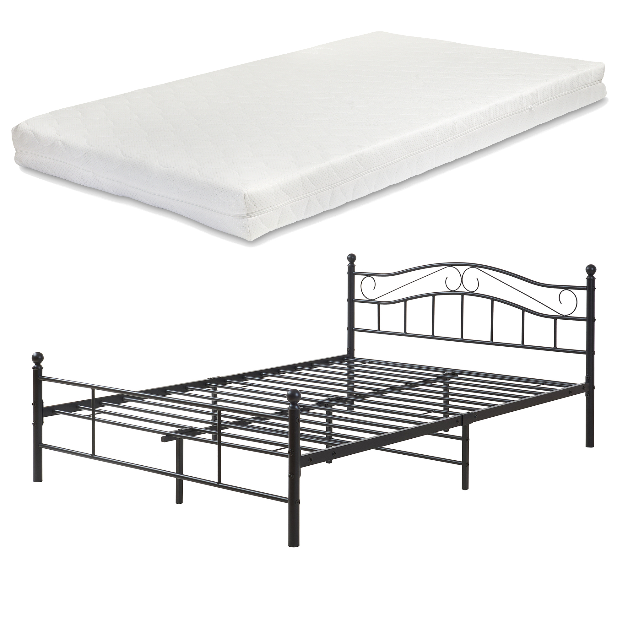 Pat metalic Florența 140x200 cm cu saltea din spumă rece, negru