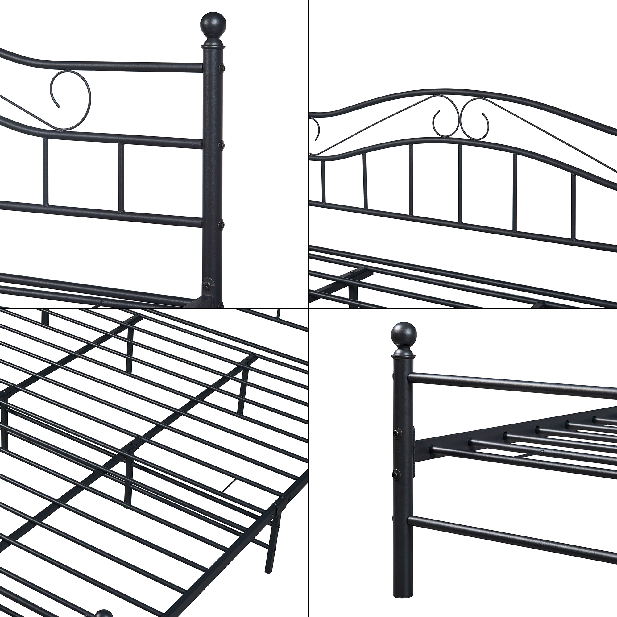 Acest pat metalic negru este ușor de integrat în amenajări moderne, minimaliste sau clasice. Structura stabilă oferă susținere bună, iar materialele sunt concepute pentru utilizare îndelungată, fiind rezistente la zgârieturi, lovituri și uzură. În plus, întreținerea este simplă, ceea ce îl face ideal pentru locuințe, camere de oaspeți sau apartamente în regim hotelier.