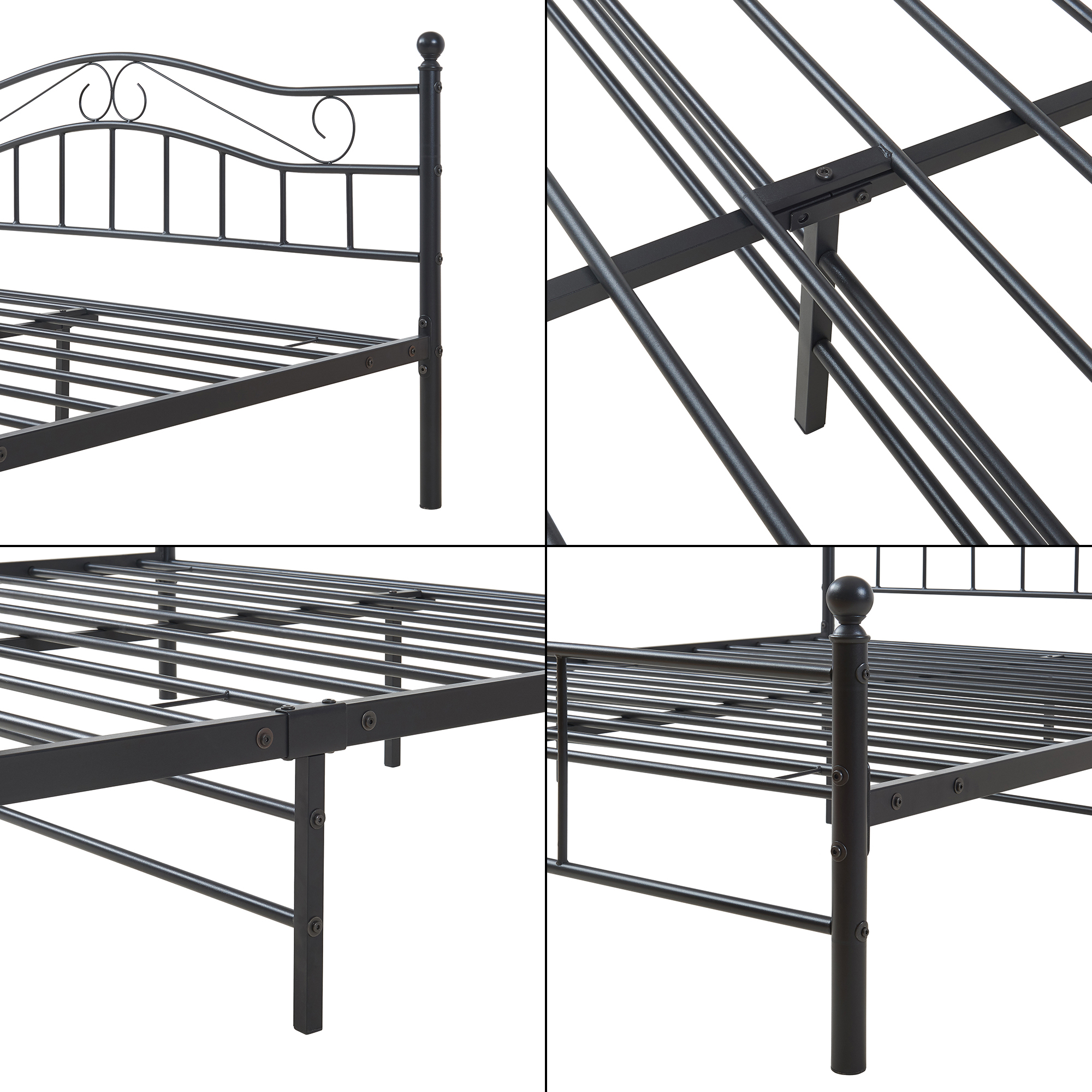 Construit din otel vopsit in camp electrostatic, cadrul este stabil, rezistent si gandit pentru utilizare de zi cu zi. Barele metalice solide ofera o baza ferma pentru saltea, contribuind la un somn odihnitor si la o sustinere corecta. Suprafata este rezistenta la zgarieturi, lovituri si uzura, fiind usor de curatat cu o laveta umeda.