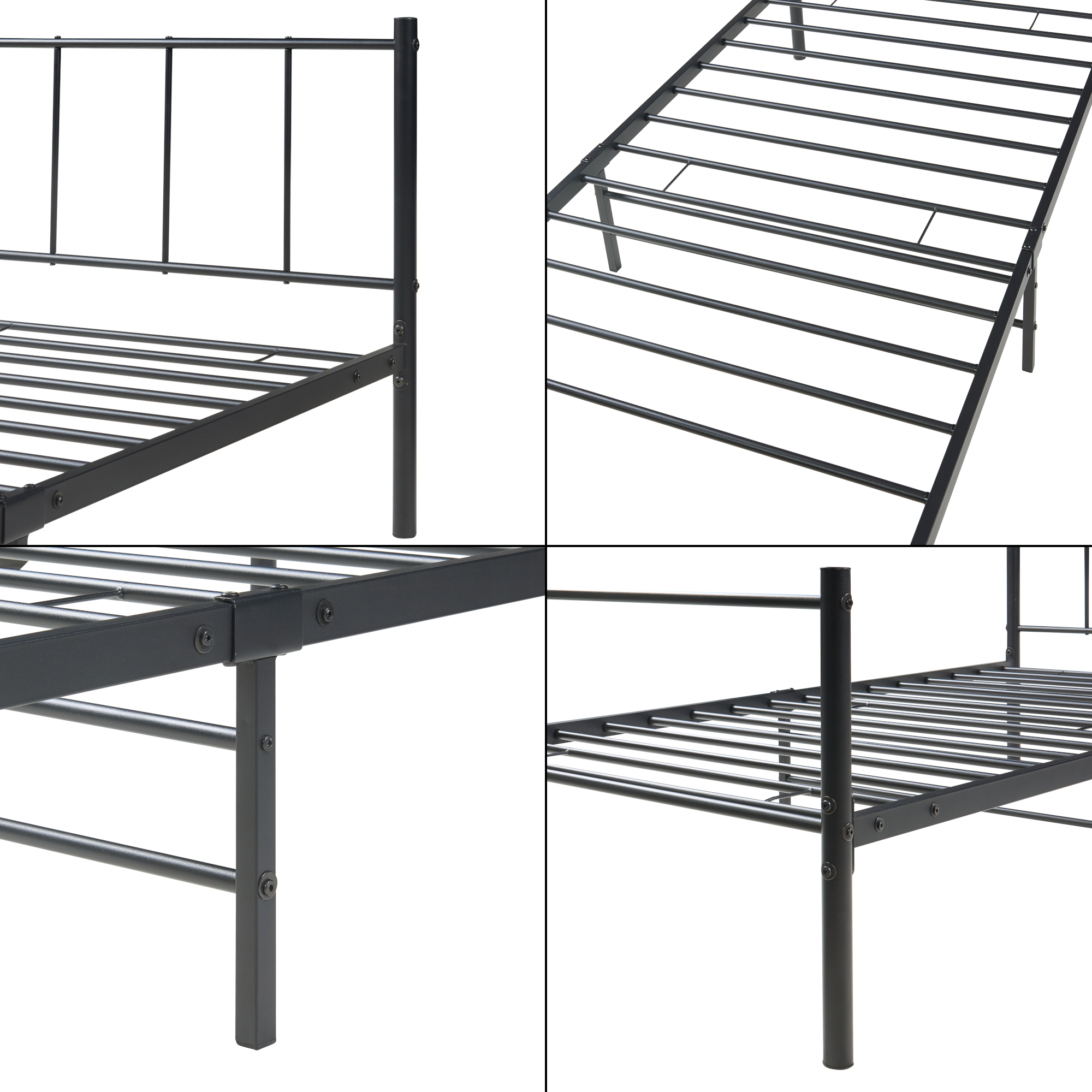Pat metalic Laos 90x200 cm, negru, cadru din otel [en.casa]