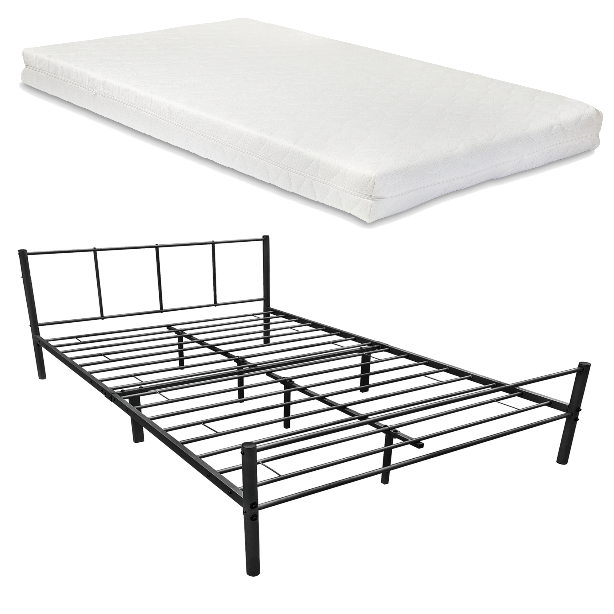 Pat metalic Laos cu saltea 160 x 200 cm negru [en.casa] HausGarden Leisure