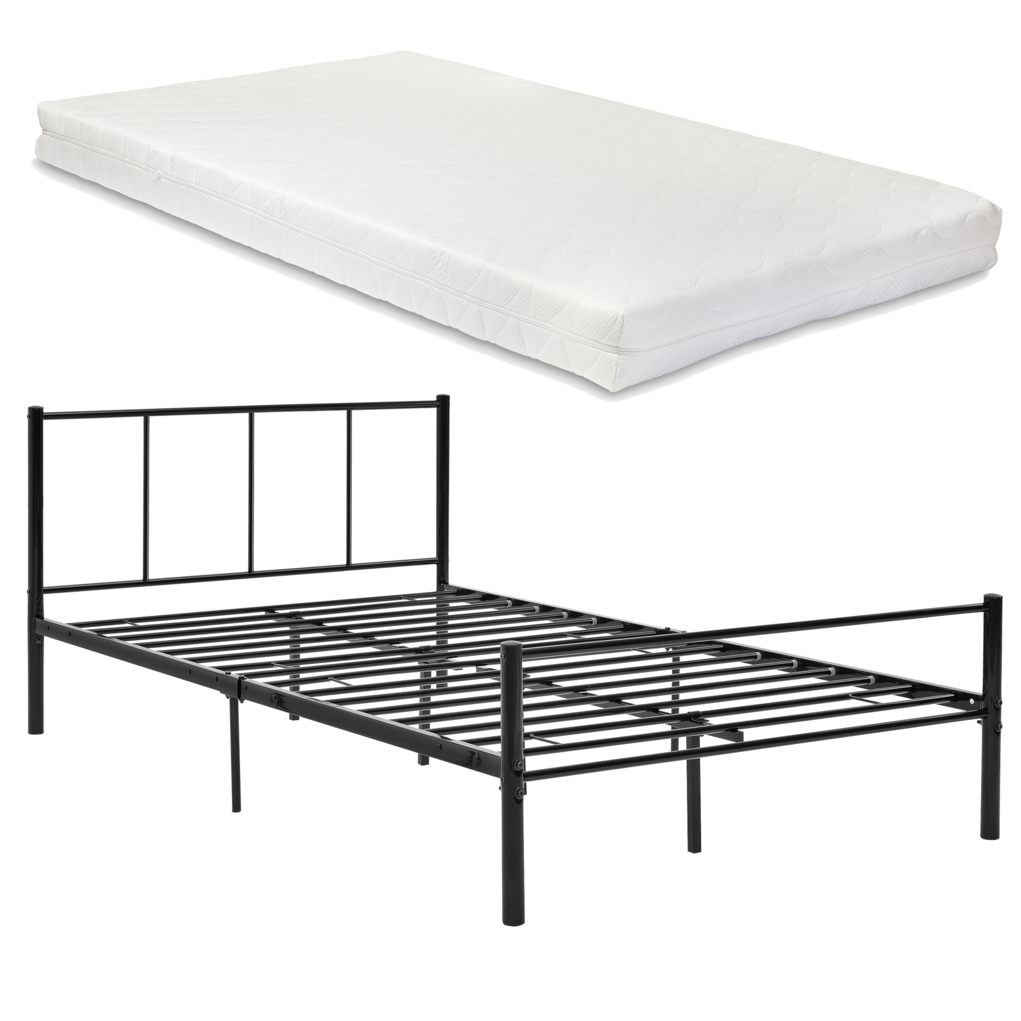 Pat metalic Viena cu saltea 120 x 200 cm negru [en.casa] HausGarden Leisure