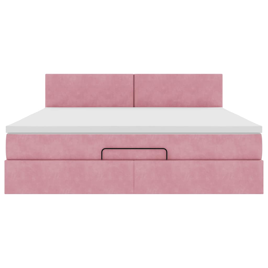 Pat otoman cu saltea și LED-uri, roz, 180x200cm, catifea GartenMobel Dekor