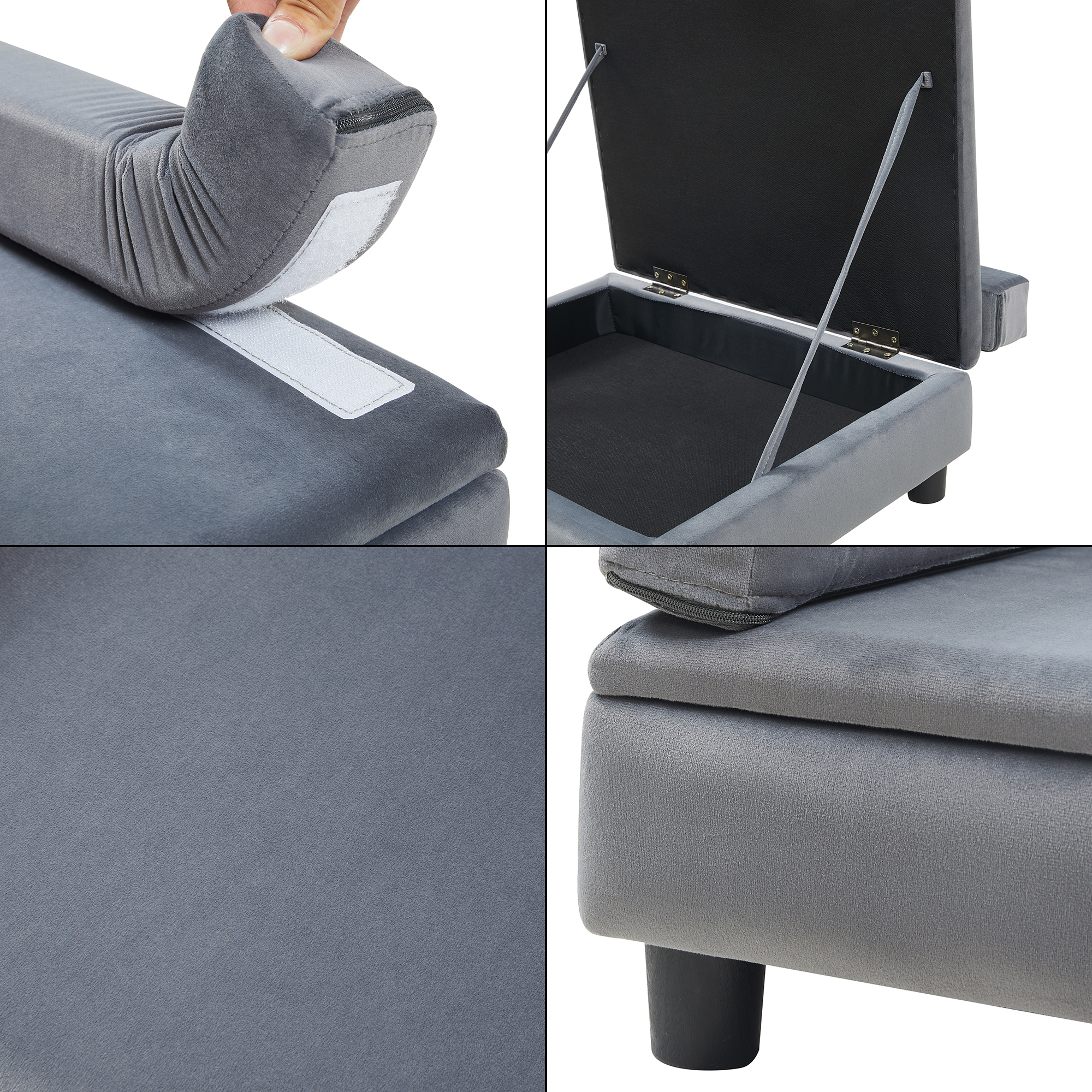 Descriere Pat animale spațiu depozitare, catifea gri