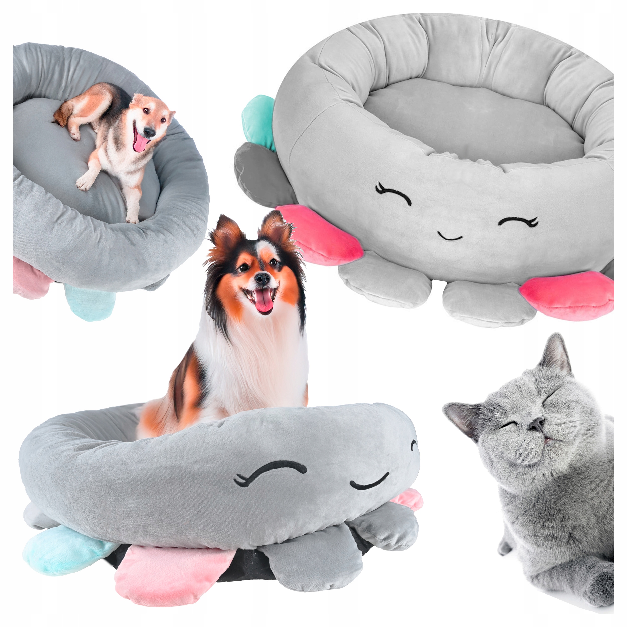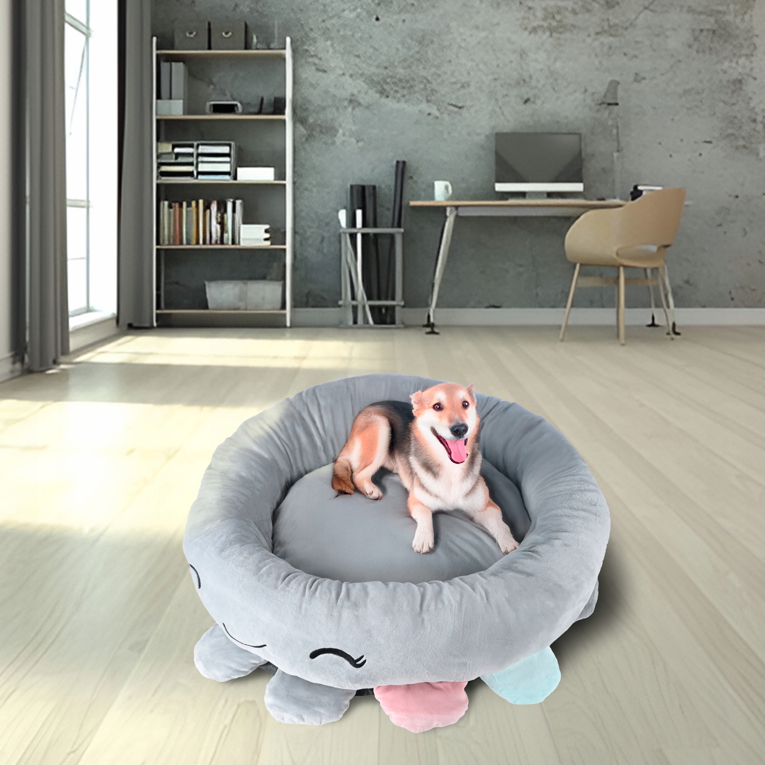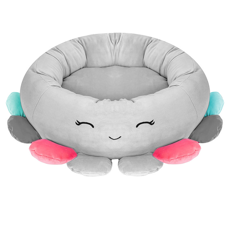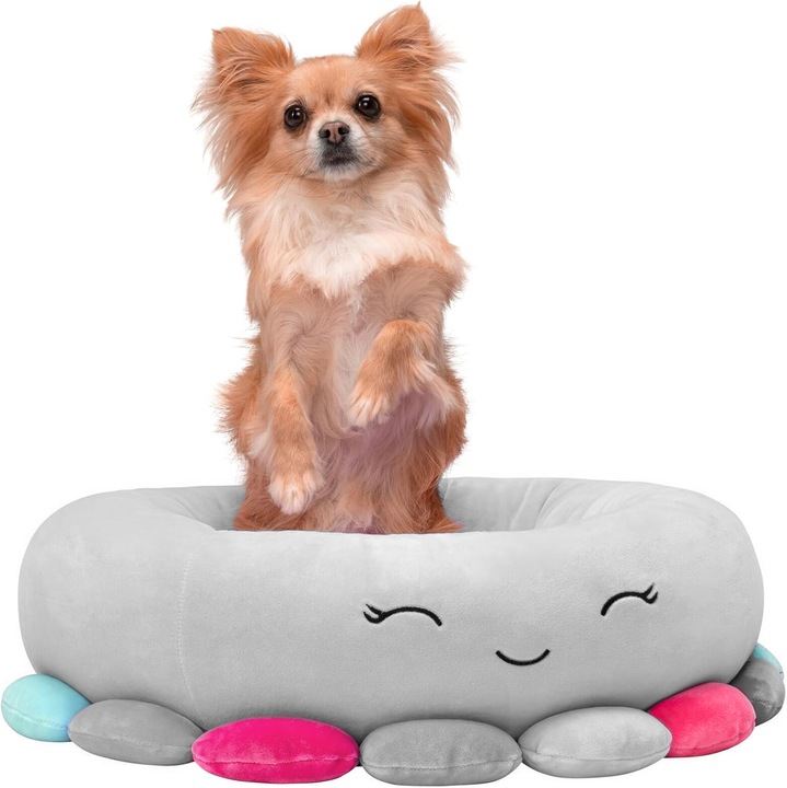 Pat pentru caini, cu margini groase ridicate, antiderapant, model meduza, 70x70x20 cm, gri Household NewTrend