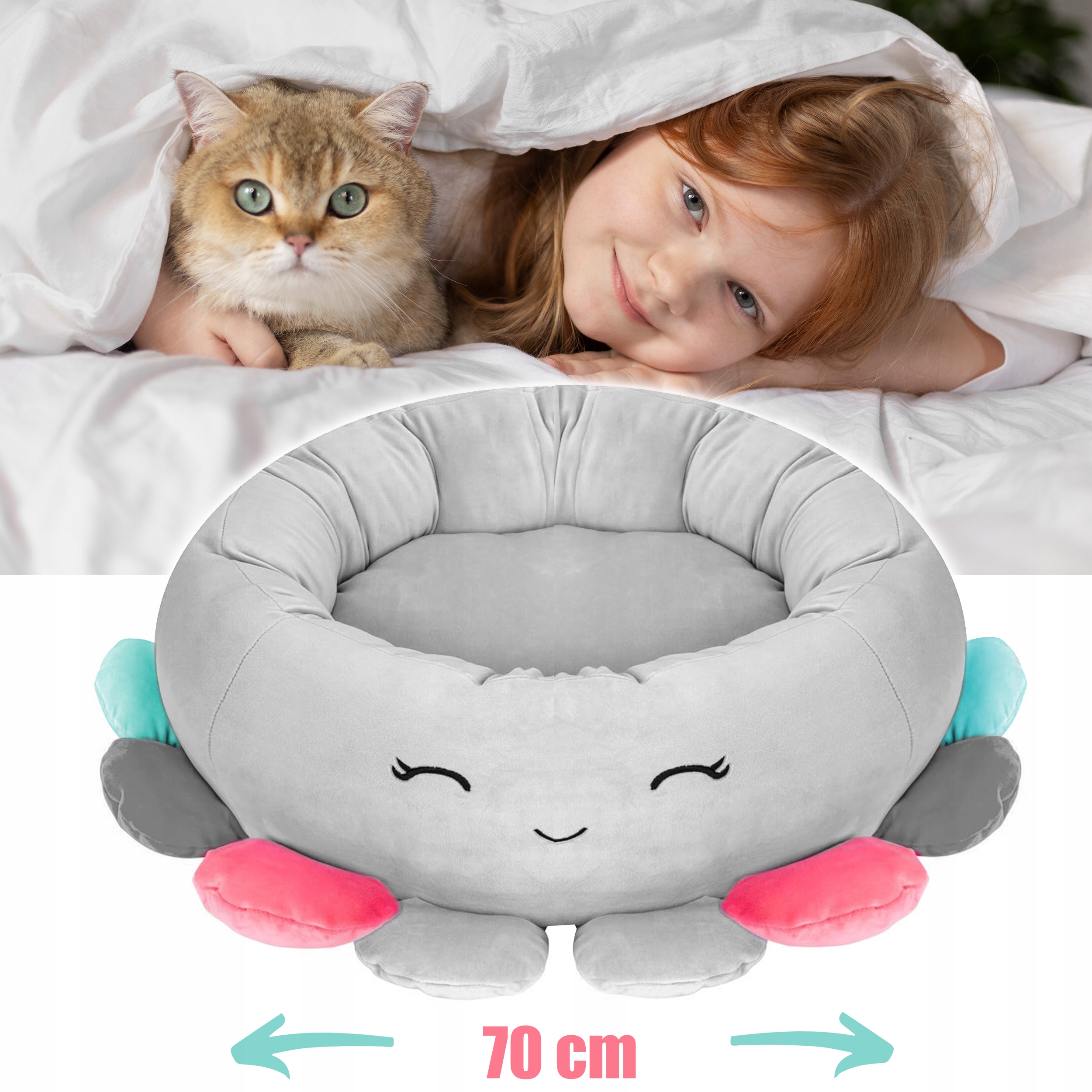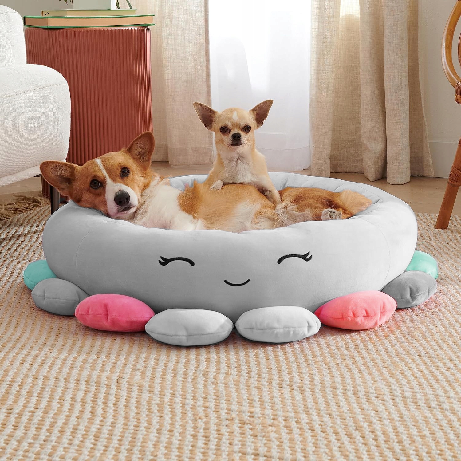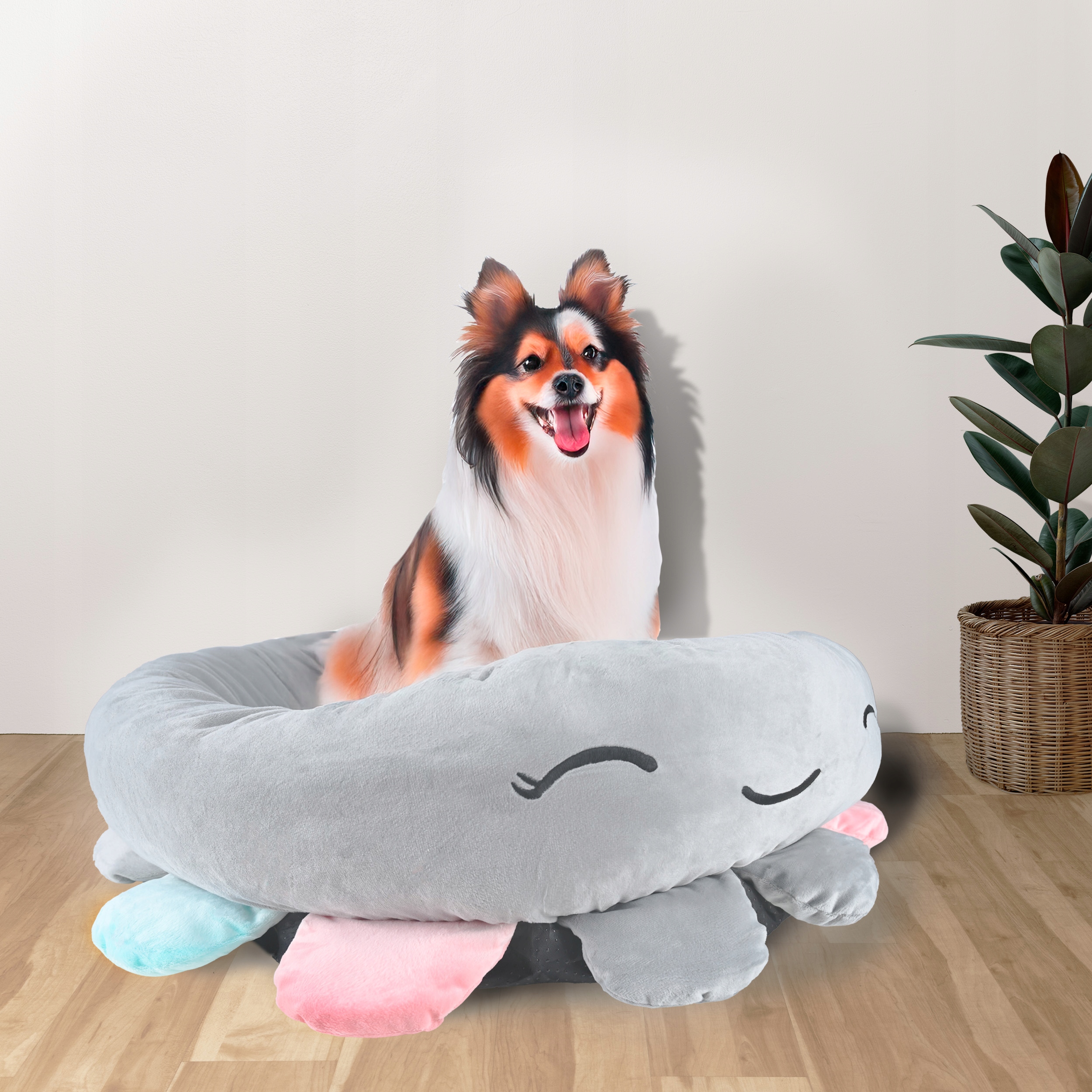 Pat pentru caini, cu margini groase ridicate, antiderapant, model meduza, 70x70x20 cm, gri Household NewTrend