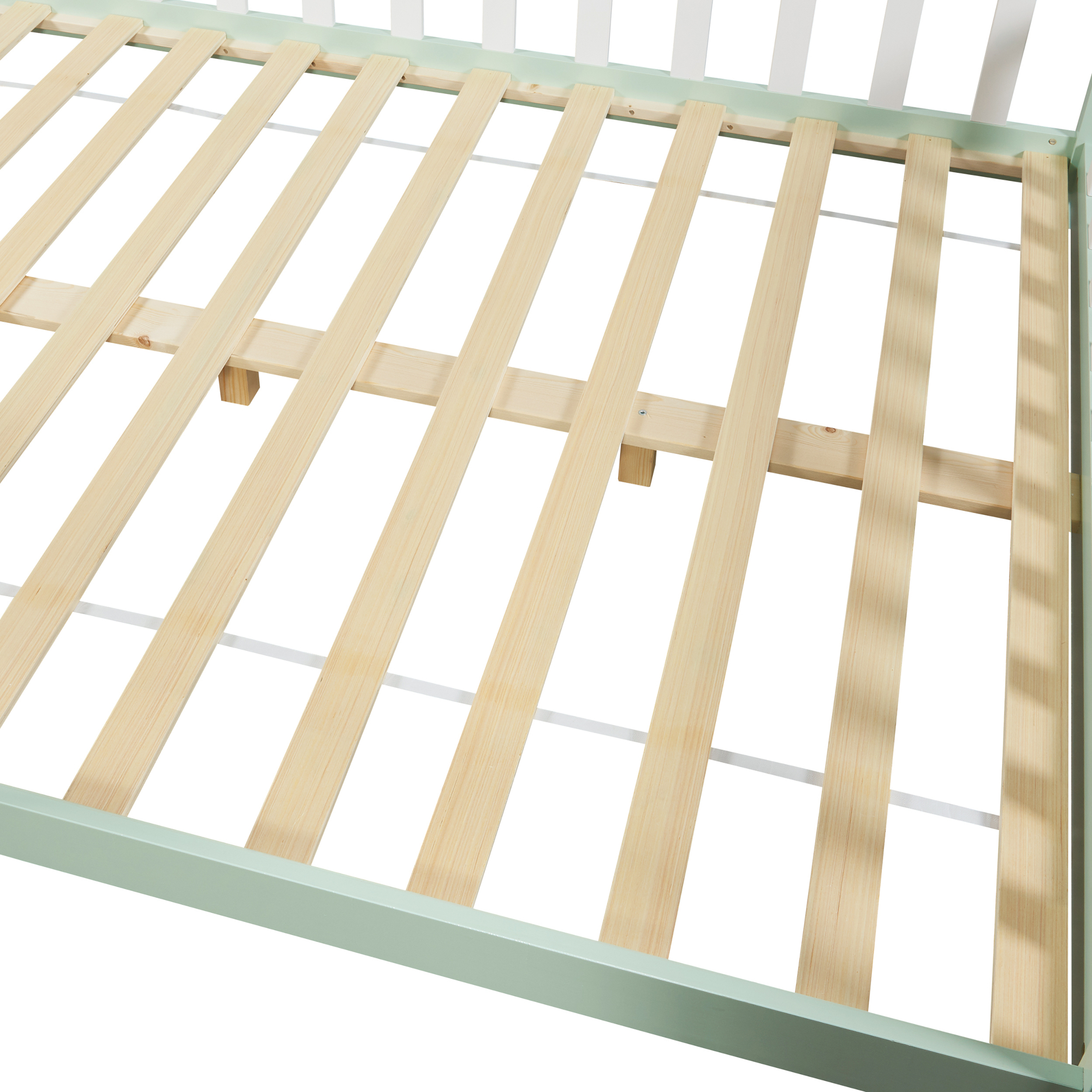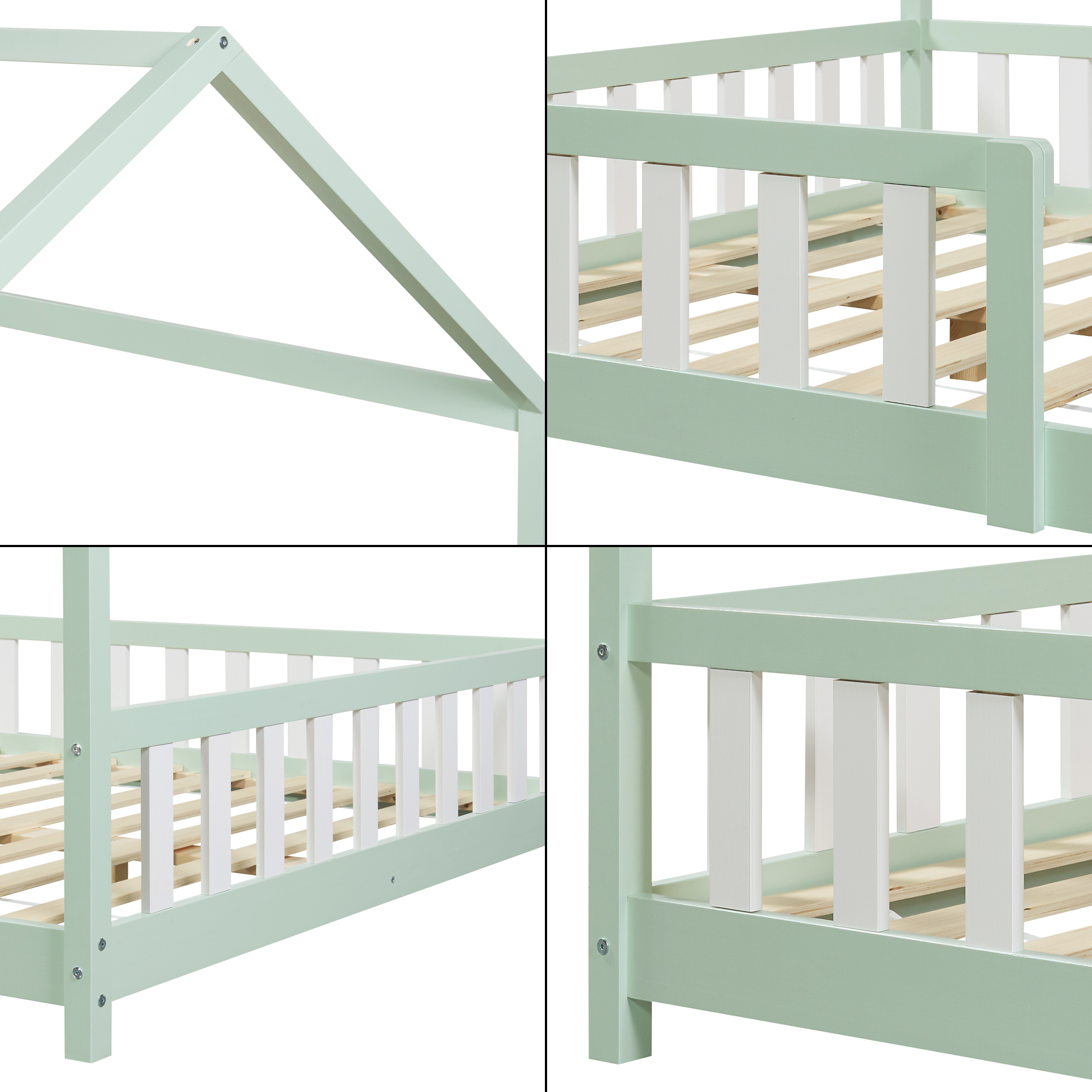 Pat pentru copii tip căsuță 120x200 cm, verde mentă, cu protecție