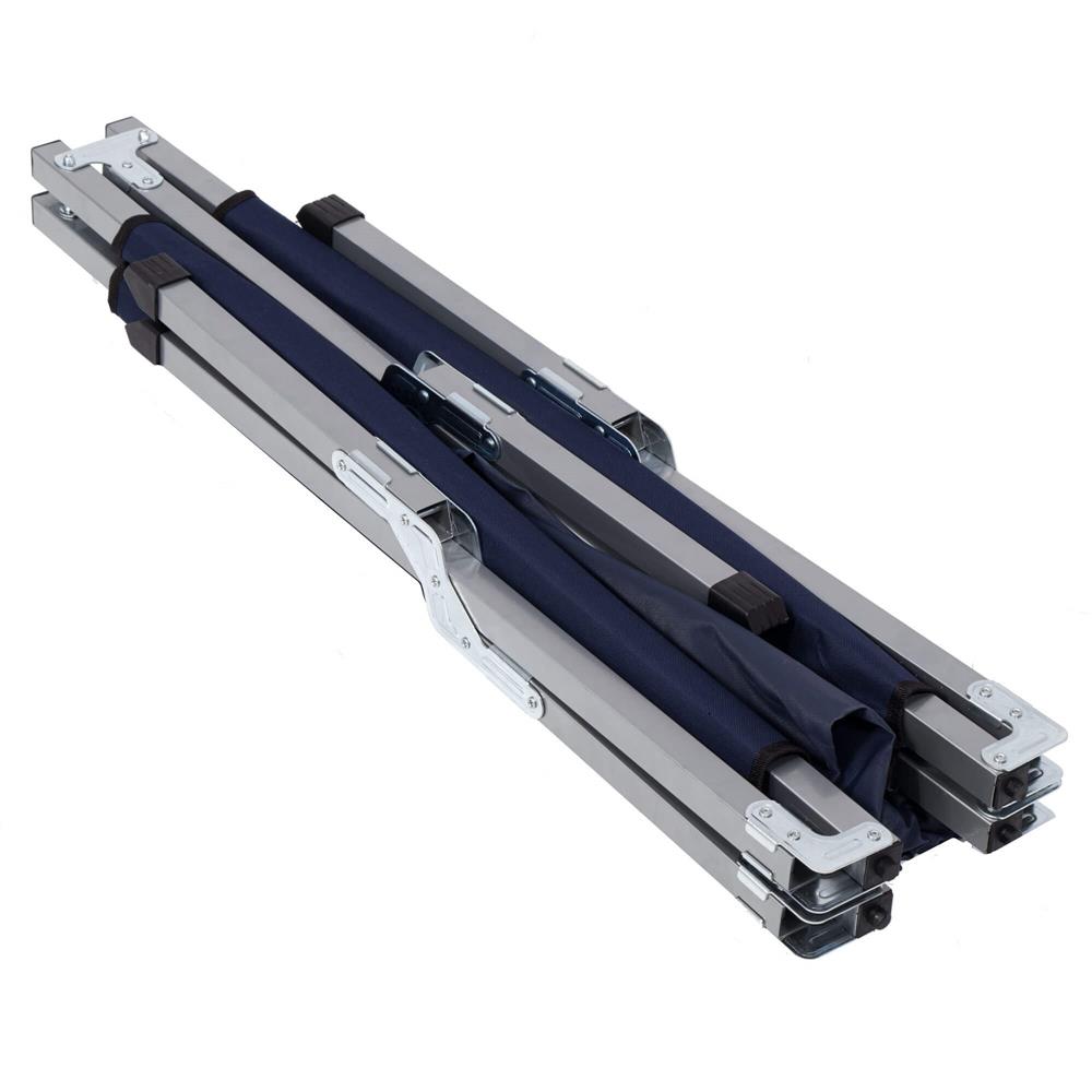 CARACTERISTICI: Material: metal, poliesterCuloarea cadrului: argintiuCuloarea tesaturii: albastru marinCuloarea husei: albastru marinPliabila: daIncarcare maxima: 150 kgDimensiuni:Latime totala: 74cmLatimea totala a fotoliului extensibil: 63 cmLungime totala: 190,5 cmInaltime totala: 42 cm PAT TURISTIC IDEAL Calatoriile, campingul si pescuitul nu au fost niciodata atat de confortabile si practice! Patul nostru turistic pliabil este solutia perfecta pentru cei care apreciaza confortul in timpul calatoriilor, dar doresc sa economiseasca spatiu in bagaje.Proiectat cu gandul la confortul dumneavoastra, acest pat va va permite sa va relaxati pe deplin oriunde ati merge. usor si robust in acelasi timp capacitate maxima de incarcare de pana la 150 kg sistem intuitiv de pliere si desfasurare geanta cu maner de transport inclus husa rezistenta si durabila cu cusaturi duble incuietoare de pliere constructie stabila si pana la 3 picioare in forma de X garanteaza un confort si o comoditate deplina ideal pentru camping, tabara, pescuit, plaja si gradina ocupa un spatiu surprinzator de mic atunci cand este pliata CONSTRUCTIE METALICA STABILA Patul nostru de camping are un cadru metalic robust, cu tuburi structurale groase, care garanteaza stabilitate si rezistenta, indiferent de teren. Puteti fi siguri ca va veti simti in siguranta si stabilitate in timp ce dormiti. Datorita barilor transversale de la capetele patului extensibil - copertina va ramane intinsa si nu trebuie sa va faceti griji ca patul se va desfasura accidental. Aceasta caracteristica suplimentara de siguranta va ofera linistea ca patul va ramane pliat pana cand veti decide altfel.Patul turistic pliabil a fost proiectat cu gandul la mobilitate. Datorita utilizarii de materiale usoare si a unui design inteligent, canapeaua este incredibil de usoara, usor de pliat si are o husa pe care o puteti purta pe umar pentru o portabilitate usoara.Acum va puteti bucura de un somn confortabil chiar si in calatoriile mai lungi, fara a fi nevoit sa transportati echipamente grele.Nu va pierdeti timpul cu plierea complicata. Patul nostru de calatorie este extrem de usor de pliat. Doar cateva miscari simple si veti avea un pat gata de utilizare in cel mai scurt timp. Fara complicatii inutile, puteti incepe rapid aventura sau relaxarea in mijlocul naturii.