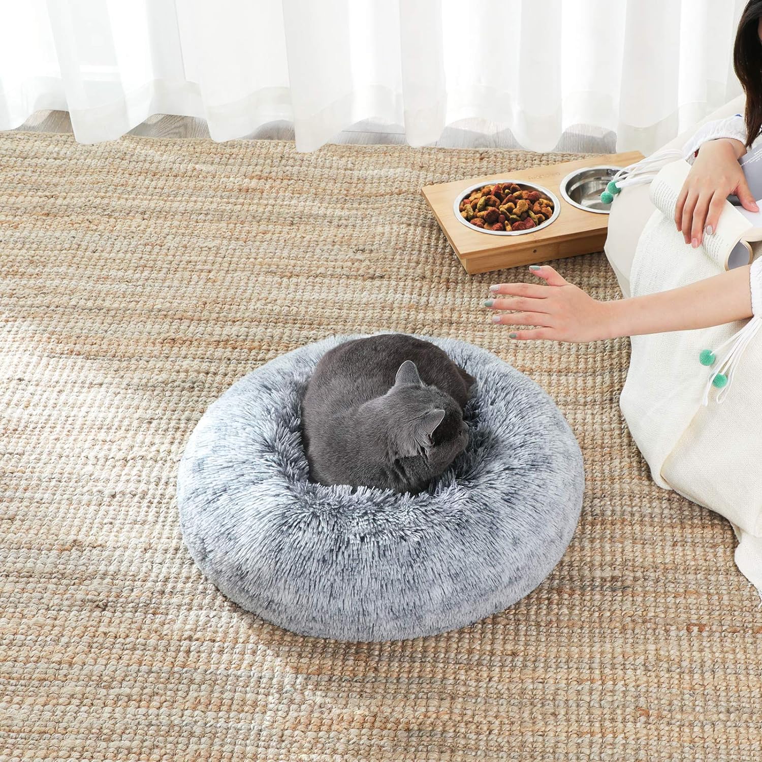 Ofera-i prietenului tau blanos un loc cald si confortabil cu acest pat pufos pentru caini si pisici FEANDREA. Realizat din plus moale cu fir lung si umplut generos cu material PP, patul creeaza un spatiu placut pentru odihna, relaxare si somn linistit. Forma rotunda si marginile inalte contribuie la o senzatie de siguranta, fiind potrivit pentru animalele care iubesc sa se cuibareasca.