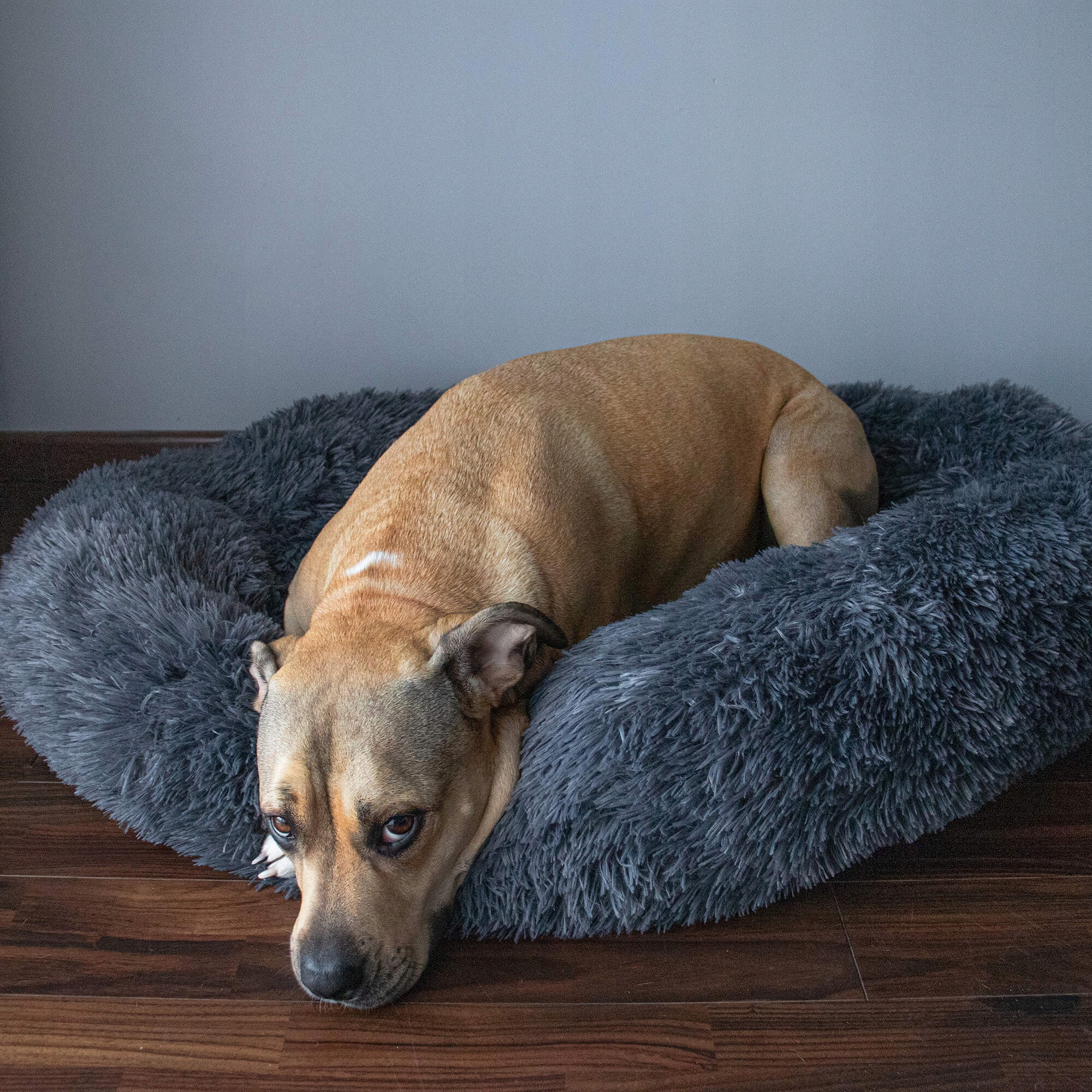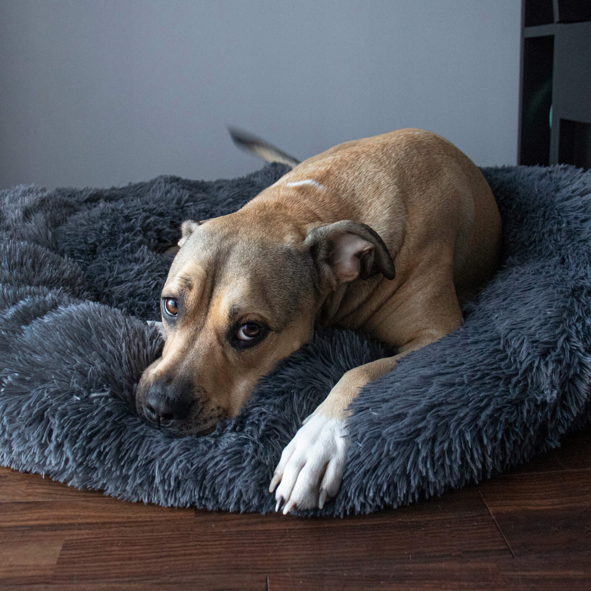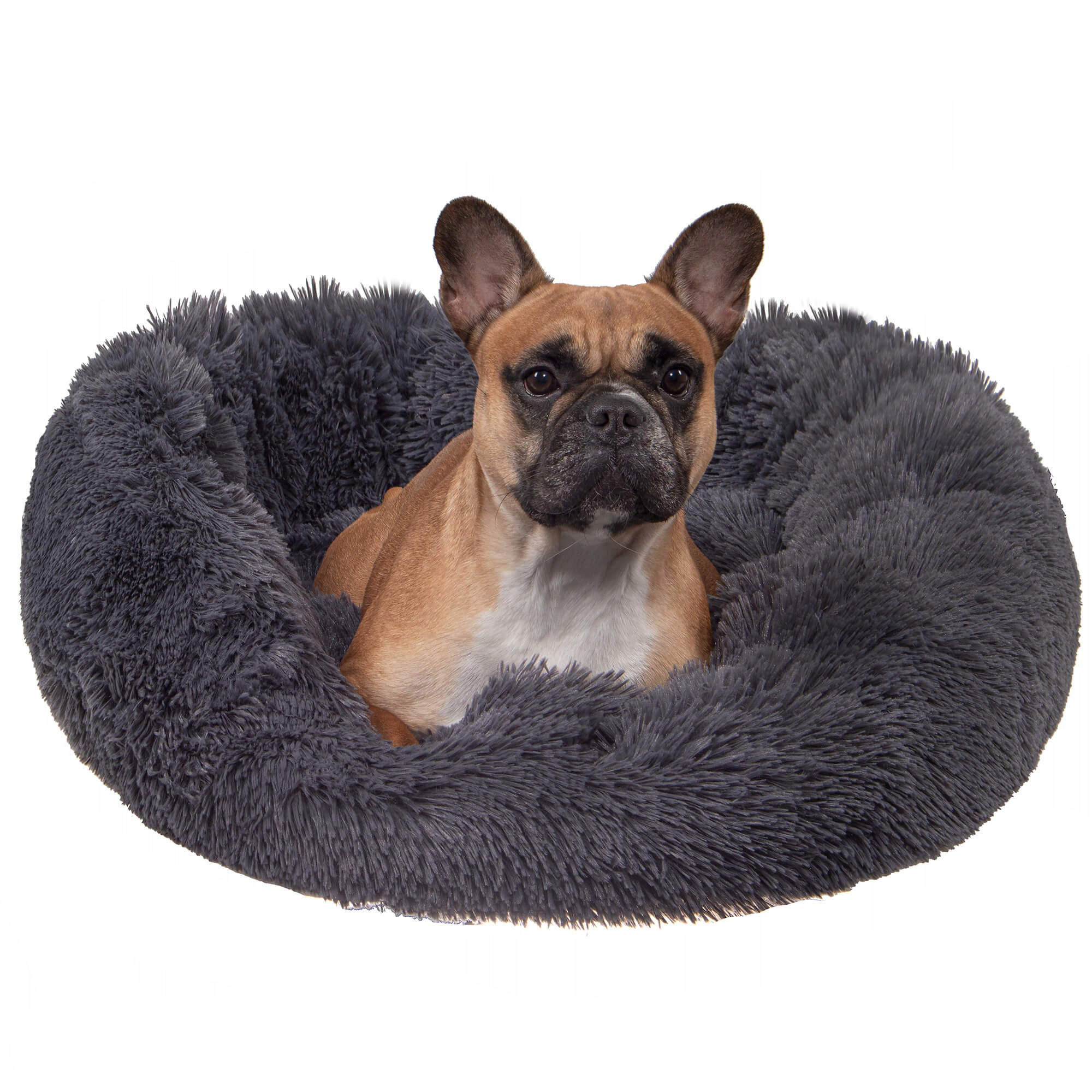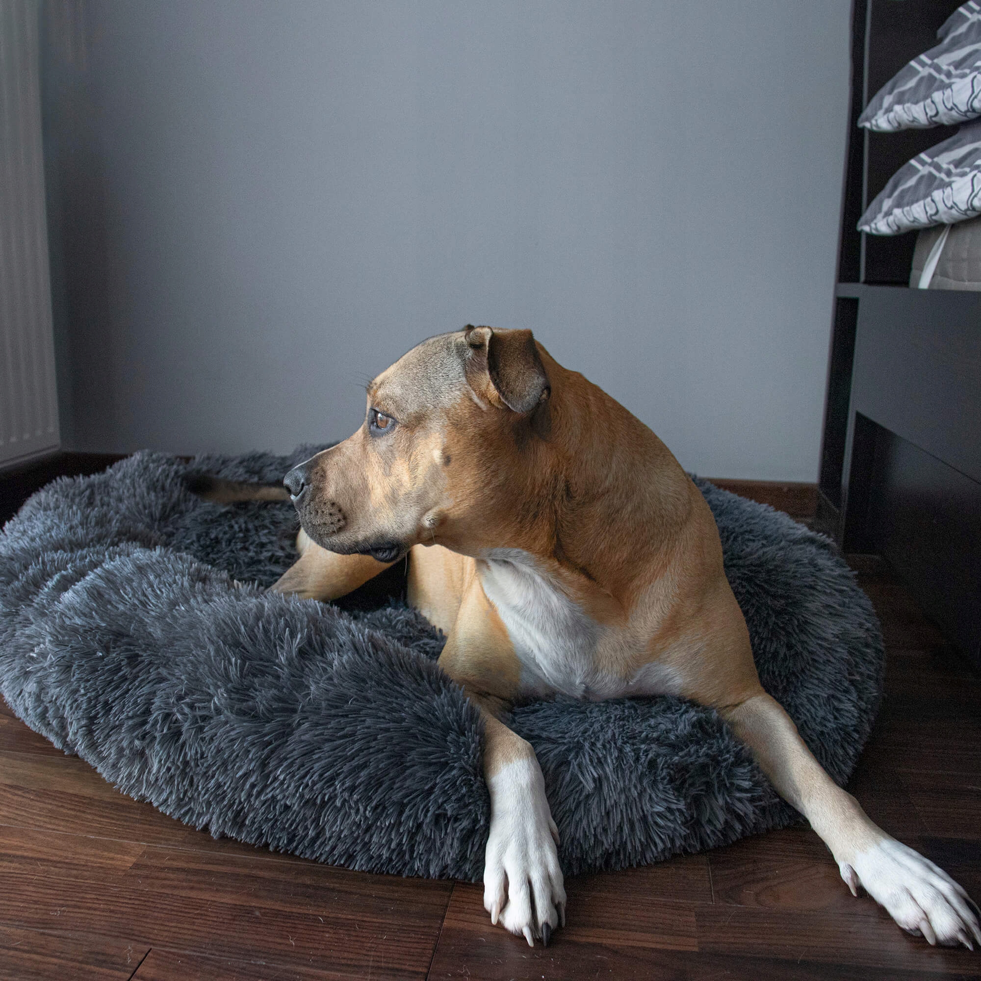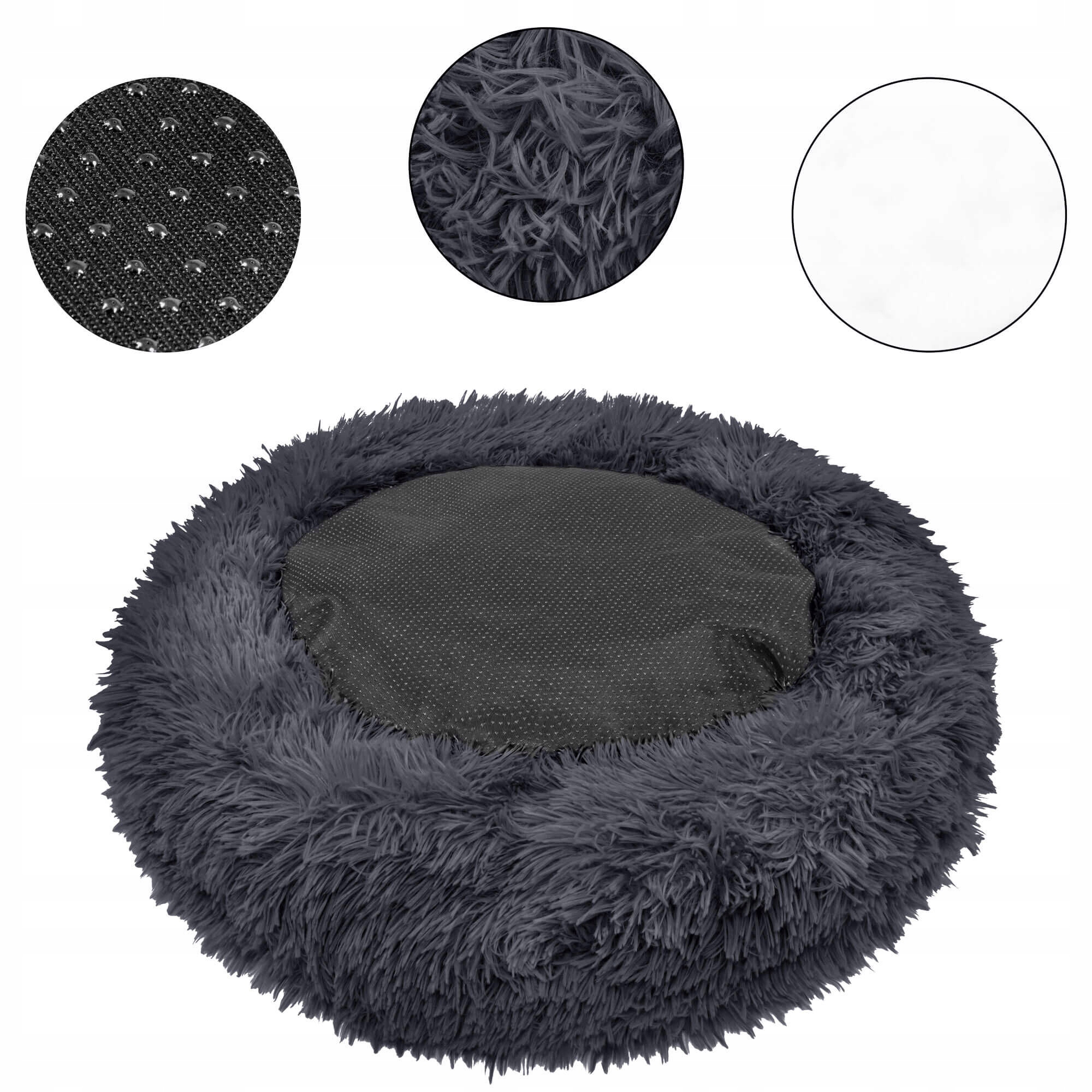 Pat pufos Sersimo pentru caini si pisici, husa detasabila, 80 cm, gri inchis