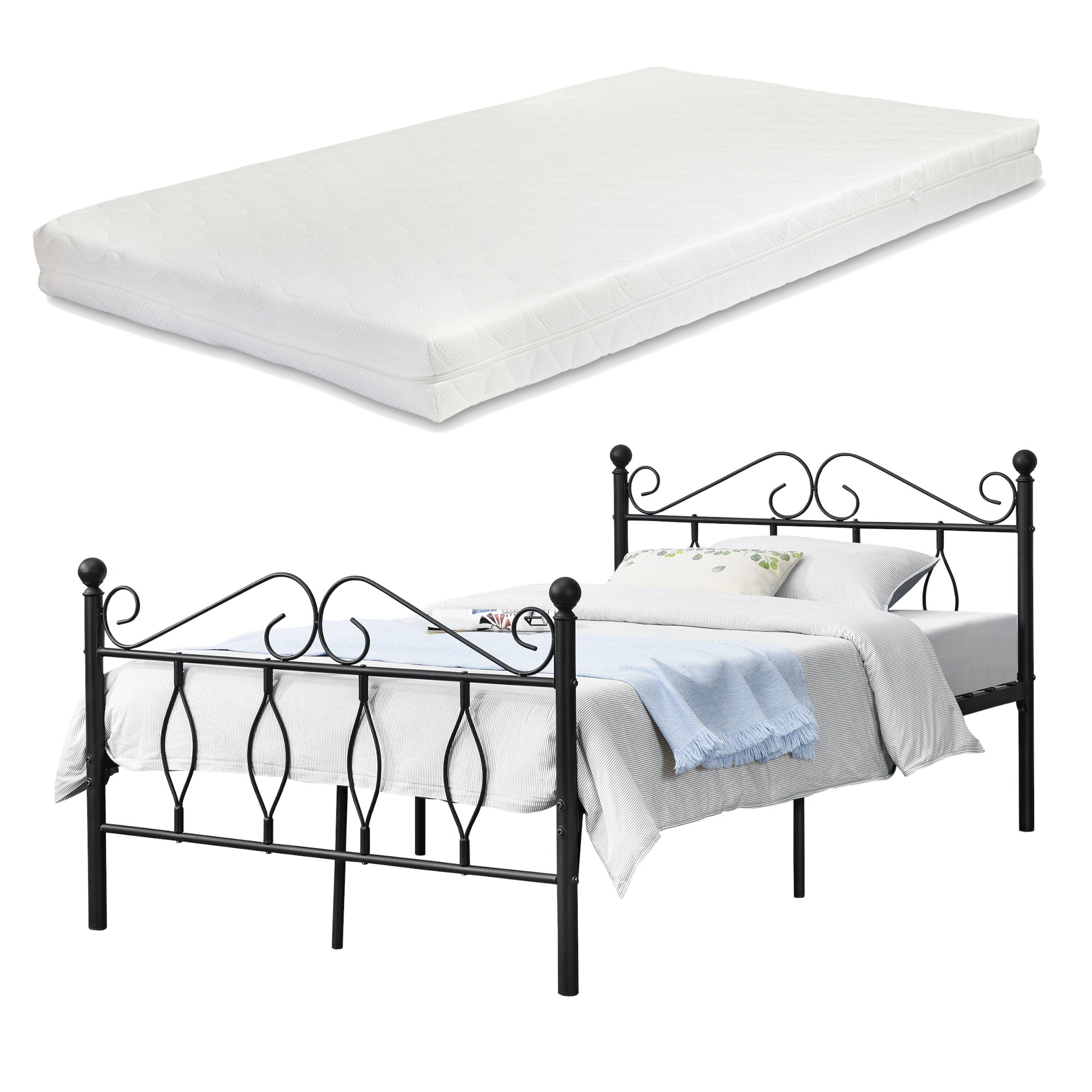 Pat rama metalica Apolda cu saltea 120 x 200 cm negru mat [en.casa] HausGarden Leisure