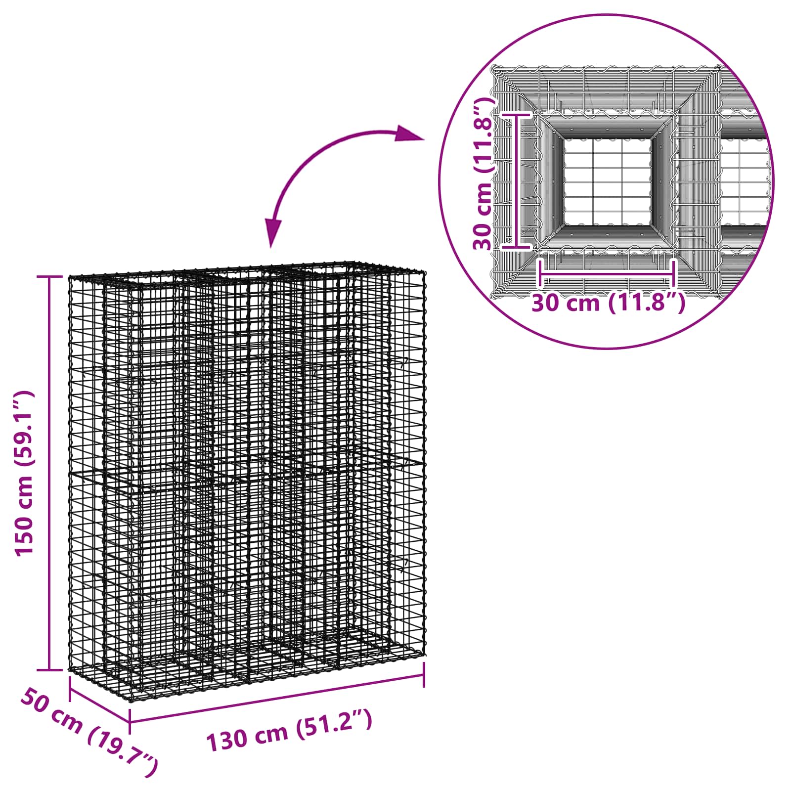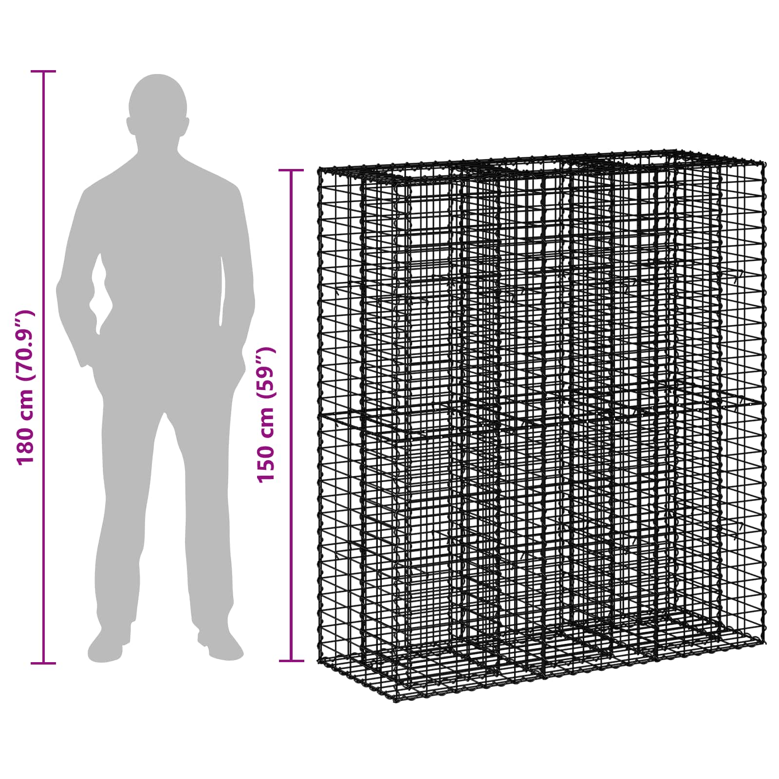 Pat ridicat din gabion 2 pcs Argintiu 130 x 50 x 150 cm GartenMobel Dekor