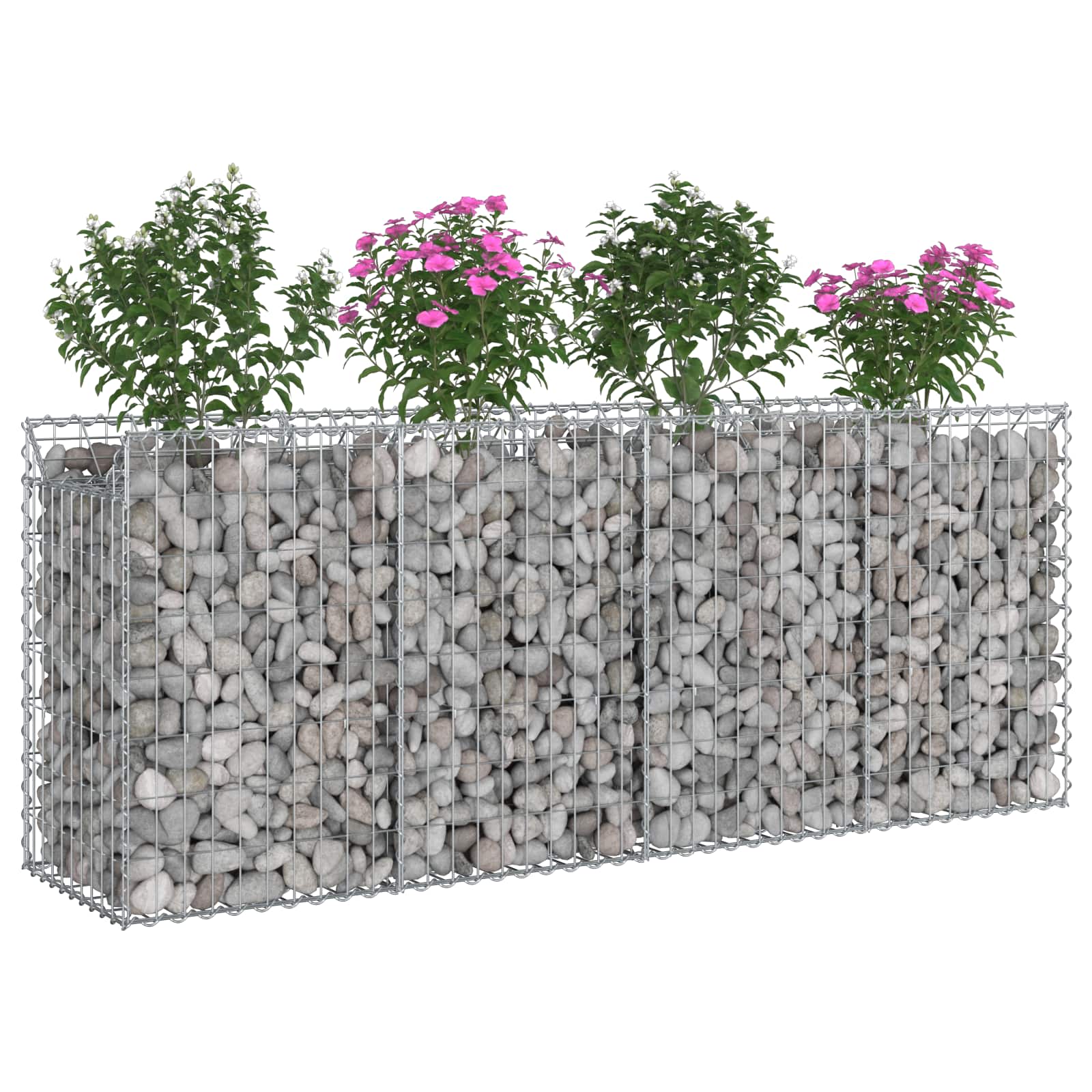 Descriere Pat ridicat gabion 2 pcs Argintiu