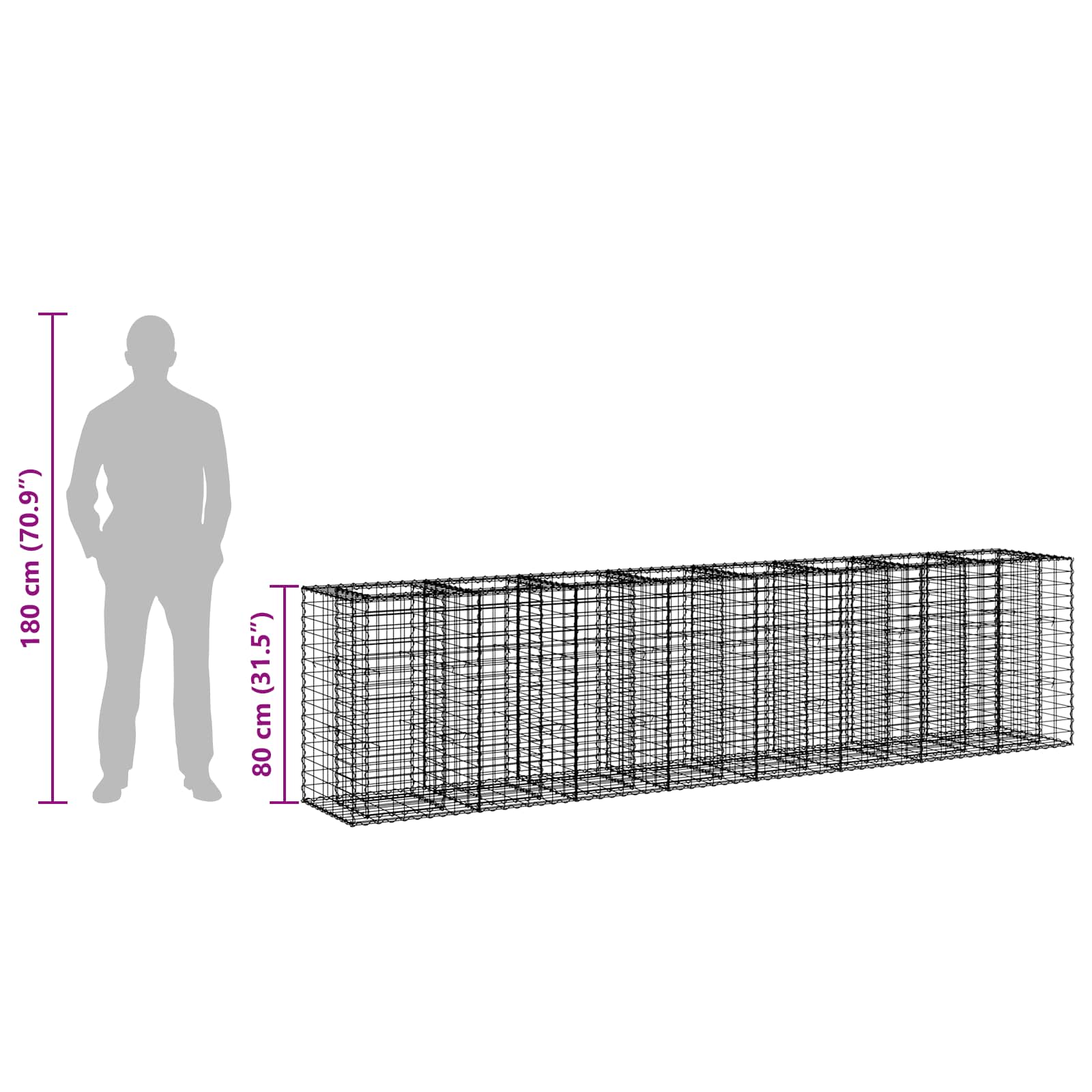 Pat ridicat din gabion 2 pcs Argintiu 330 x 50 x 80 cm GartenMobel Dekor