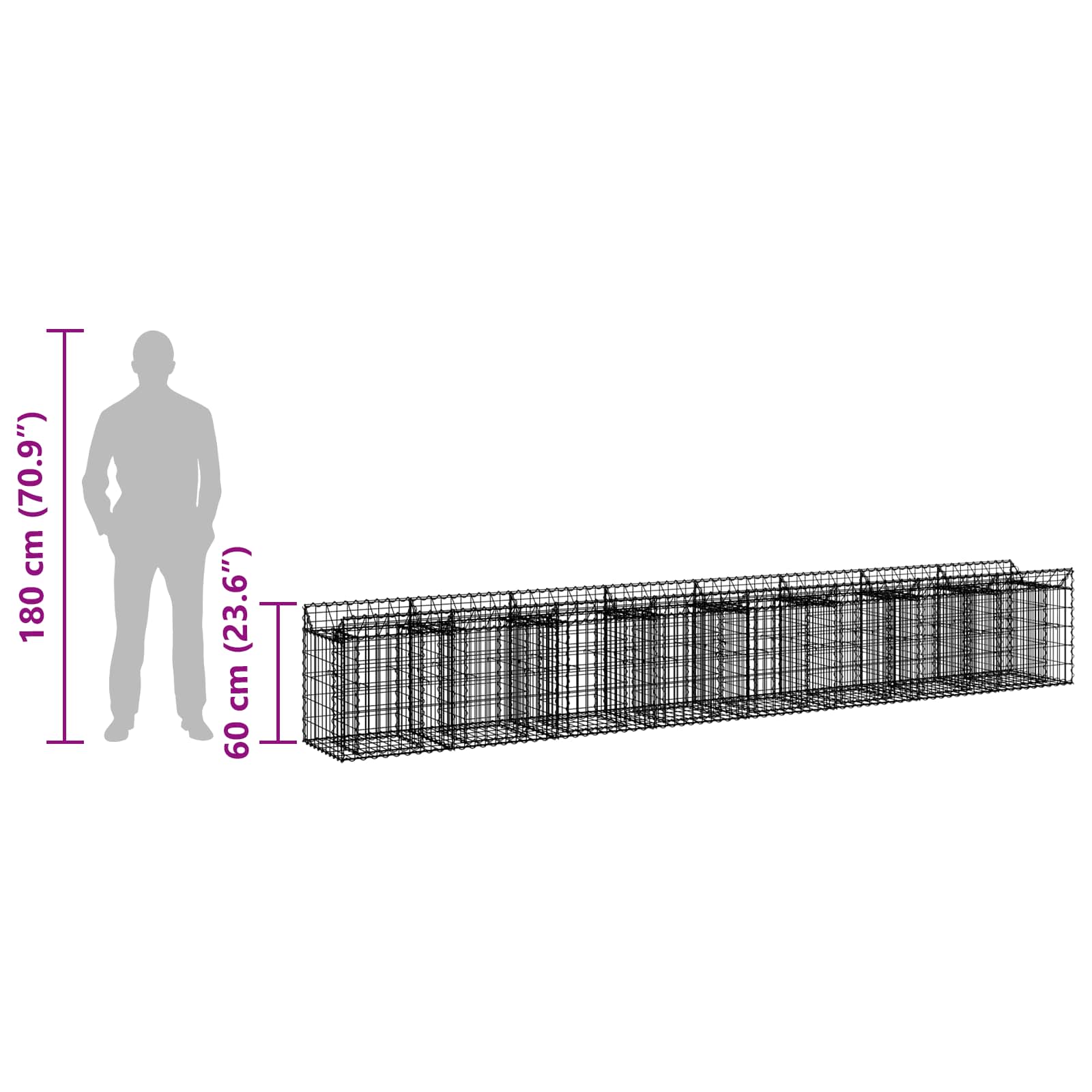 Pat ridicat din gabion 2 pcs Argintiu 400 x 50 x 60 cm GartenMobel Dekor