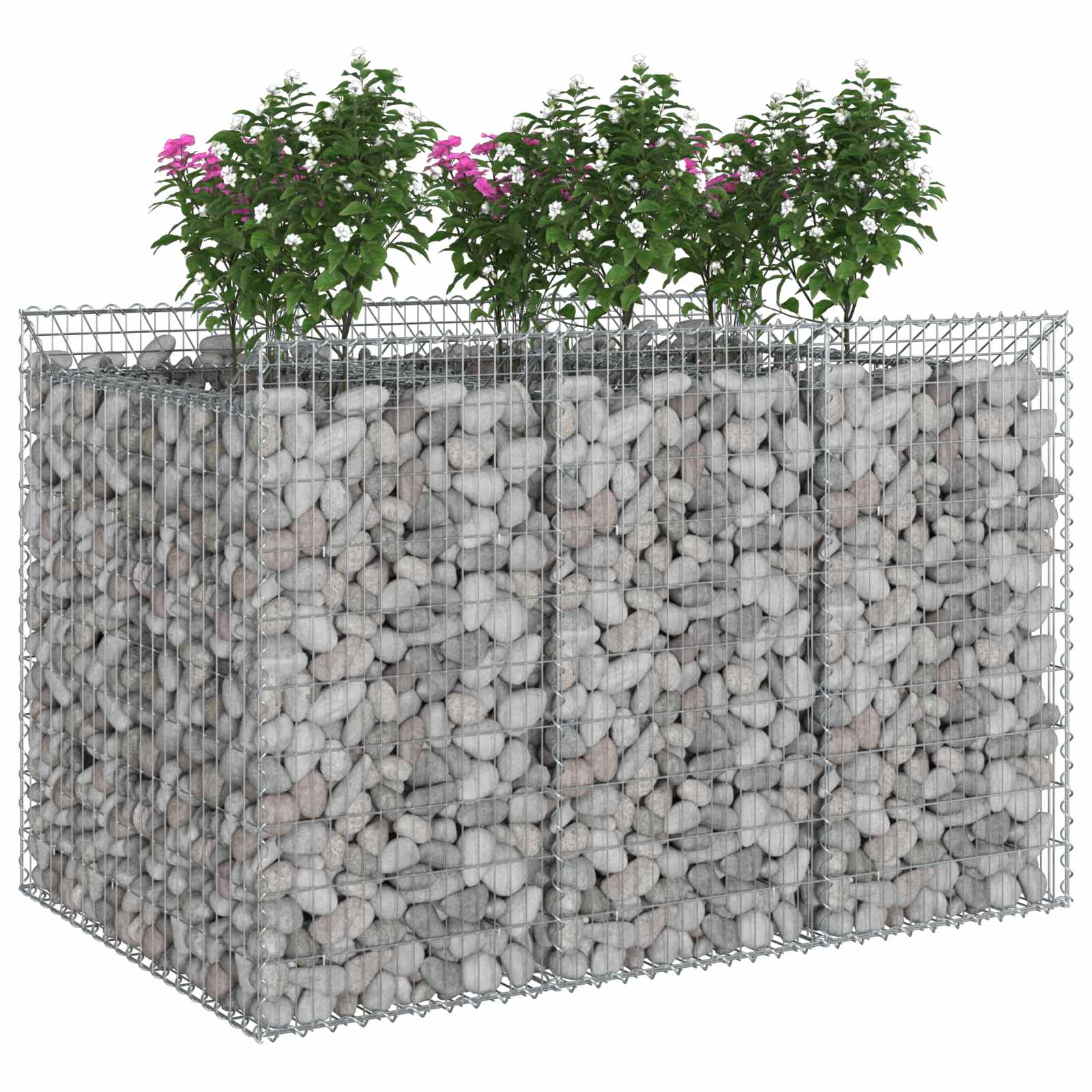 Descriere Pat ridicat gabion 2 pcs Argintiu