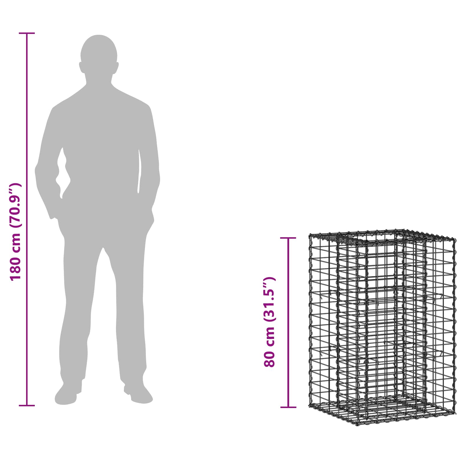 Pat ridicat din gabion Argintiu 50 x 50 x 80 cm Oțel Galvanizat GartenMobel Dekor