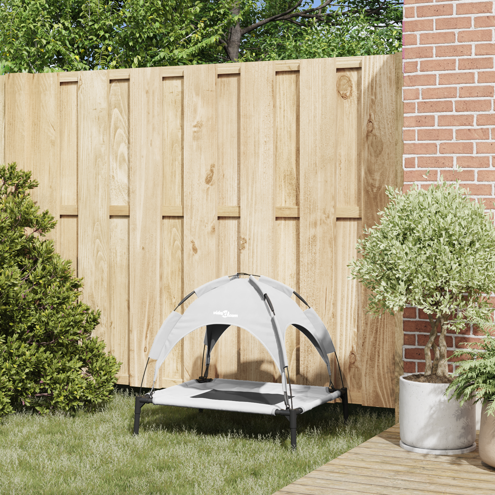 Pat ridicat pentru câini cu acoperiș detașabil Argintiu M Metal GartenMobel Dekor