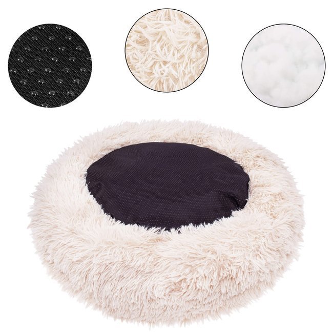 Material: poliester Culoare: bej Forma: rotunda Diametru: 90 cm Potrivit pentru catei/pisici cu talie: mai mica de 23 kg Baza antiderapanta Acest pat pufos pentru catei si pisici va oferi animalului de companie un loc confortabil pentru odihna si somn. Materialul extrem de placut si pufos ofera un confort extraordinar, oferind in acelasi timp cainilor sau pisicilor un colt cald si sigur. Culcusul prezentat va fi un loc din care animalul tau de companie nu va dori sa se miste! Structura placuta, moale Materialul din care a fost facut patul va permite fiecarui animal de companie sa se simta confortabil si placut. Puful lung, extrem de placut la atingere, va infasoara animalul de companie, mentinandu-l cald. In plus, materialul moale si delicat nu va irita pielea sau parul unui caine sau al unei pisici. Fundul antiderapant, lipit ferm de sol Un mare avantaj al patului este baza sa, care este echipata cu proeminente antiderapante, datorita careia acesta nu aluneca pe podea. Acest element asigura faptul ca produsul se lipeste de podea stabil si nu se misca atunci cand animalul de companie se aseaza in el. Potrivit pentru a fi spalat in masina Dupa cum stiti, animalelor de companie le place adesea sa se murdareasca si astfel pot murdari culcusul. Prin urmare, producatorul s-a asigurat ca acesta poate fi reimprospatat cu usurinta. Tot ce trebuie sa faceti este sa indepartati bumbacul de umplutura - ascuns in spatele fermoarului din partea de jos - si sa spalati patul la 30 de grade. In plus, posibilitatea de a patrunde in interiorul produsului permite inlocuirea umplerii acestuia. Atentie! Umplutura nu poate fi spalata! Functionalitatea merge mana in mana cu un aspect atragator Patul pufos nu este doar un element confortabil al spatiului animalului de companie, ci si un plus de design la interior. Culoarea frumoasa, manopera solida si forma atractiva fac ca produsul sa arate elegant si eficient. AVANTAJE fabricat dintr-un material placut de inalta calitate, posibilitatea de spalare la 30 de grade, umplutura moale, inlocuibila din vata, fundul antiderapant mentine patul intr-un singur loc, forma usoara care usureaza transportul, culori frumoase, la moda