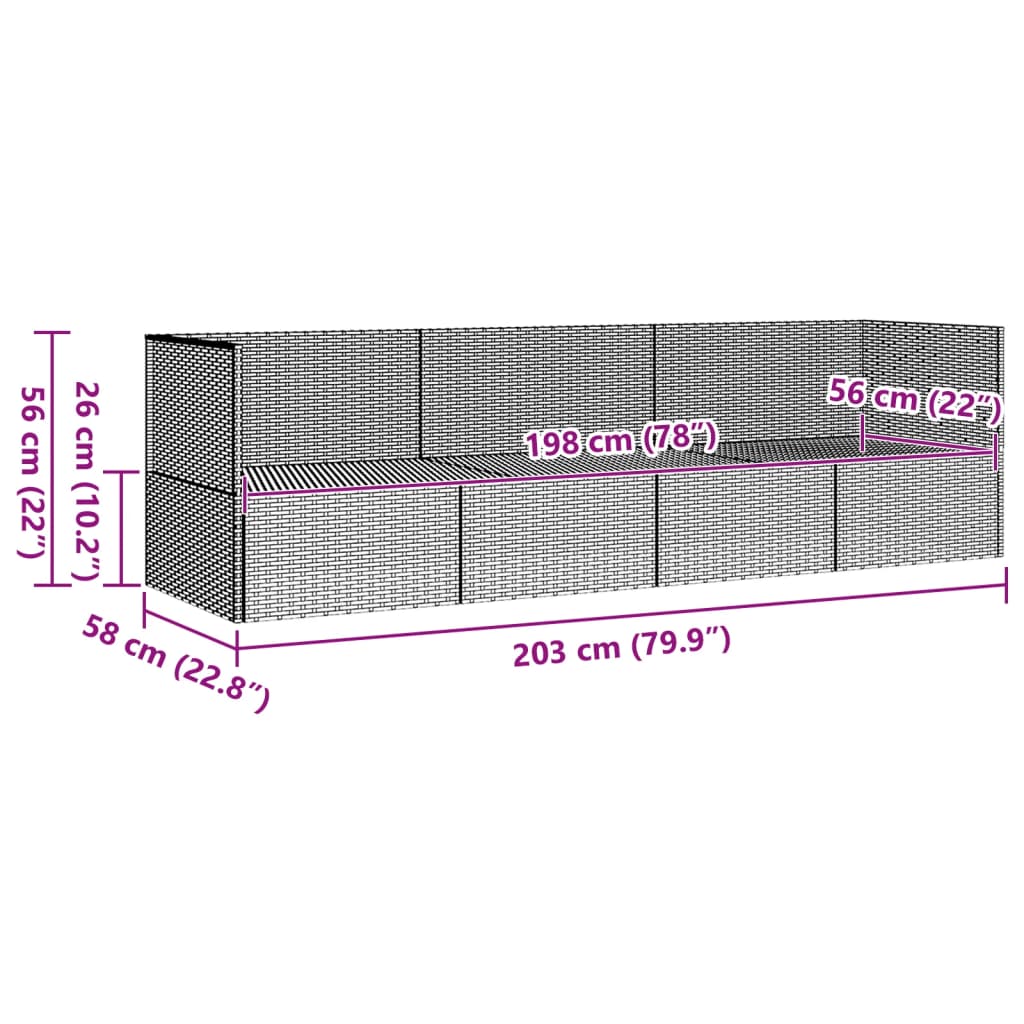 - Dimensiuni șezut: 198 x 56 cm (l x ad.)