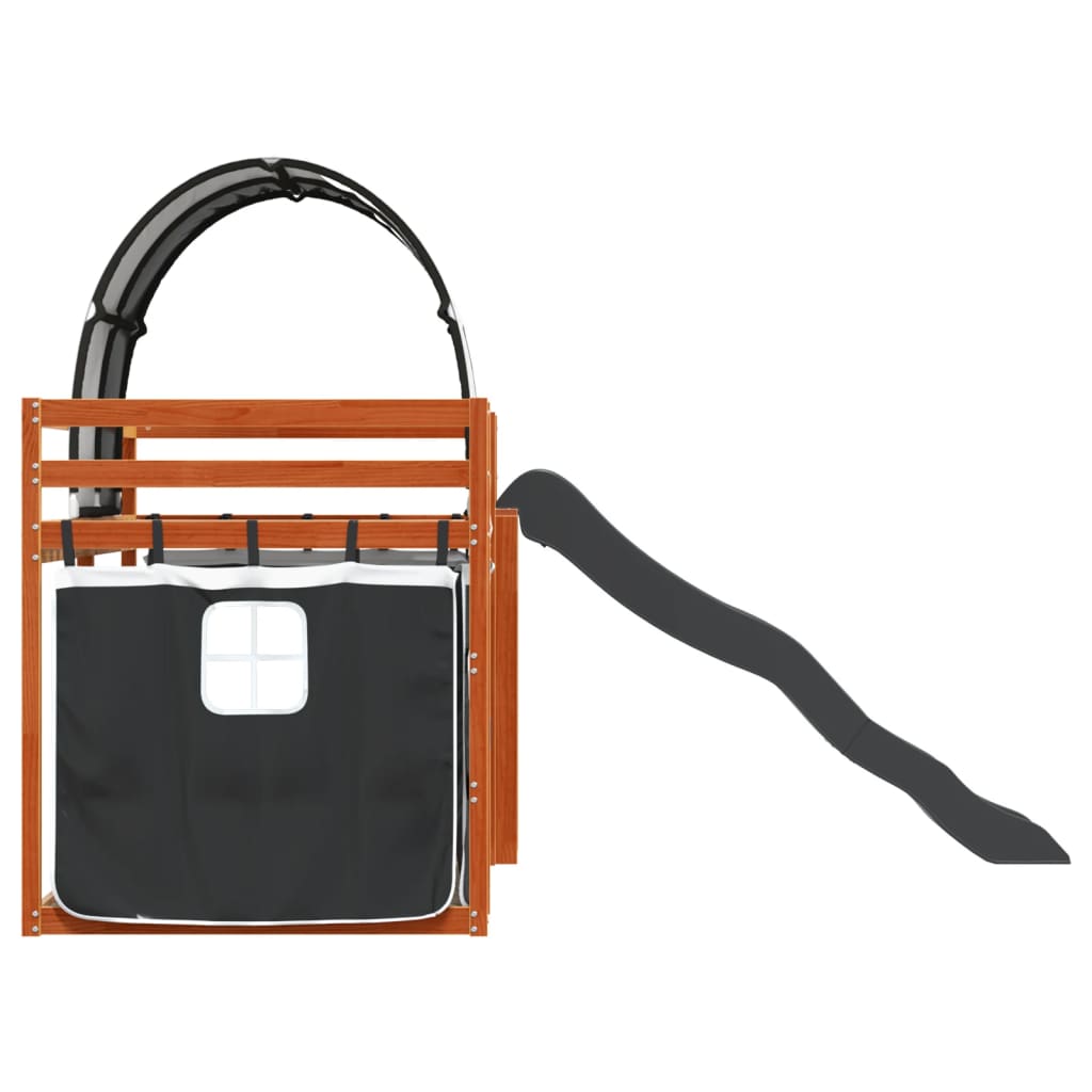 Pat supraetajat cu tobogan și perdele, alb și negru, 90x200 cm GartenMobel Dekor