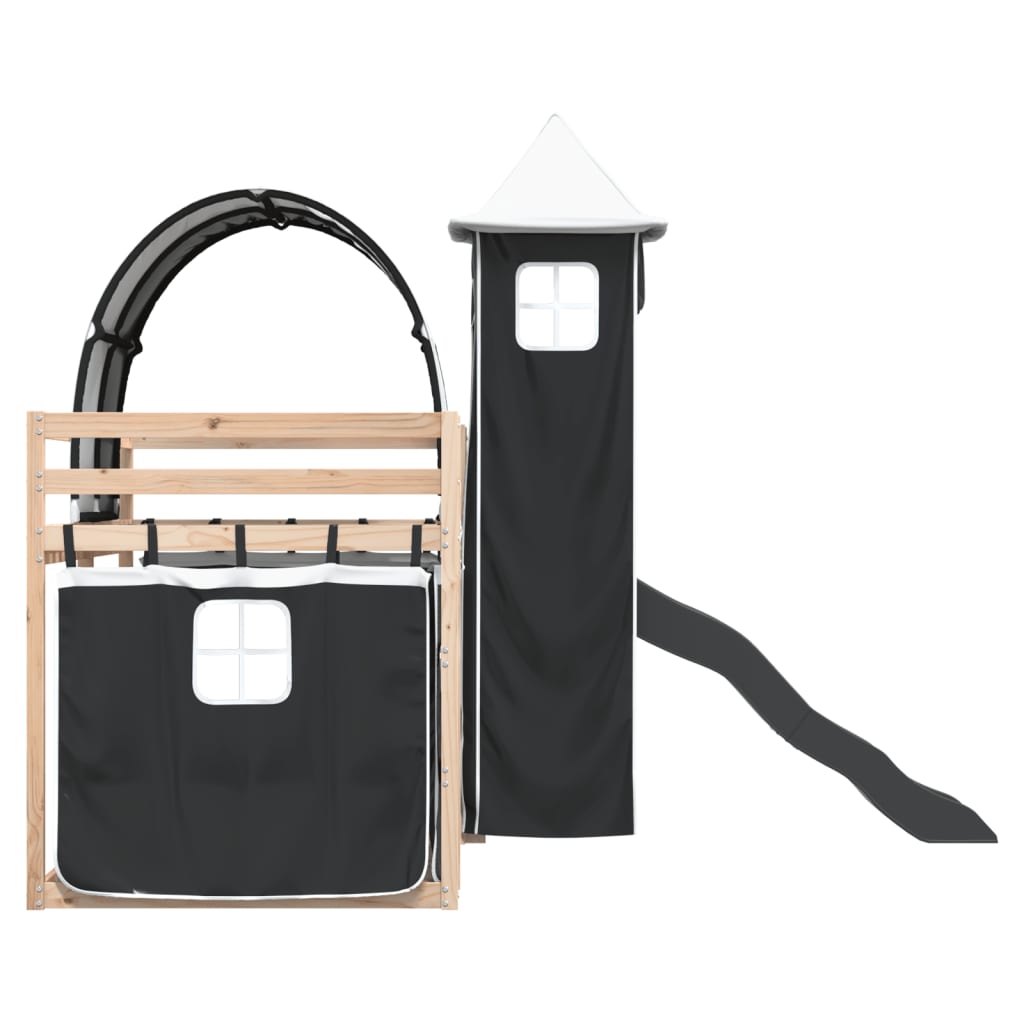 Pat supraetajat cu tobogan și perdele, alb și negru, 90x200 cm GartenMobel Dekor