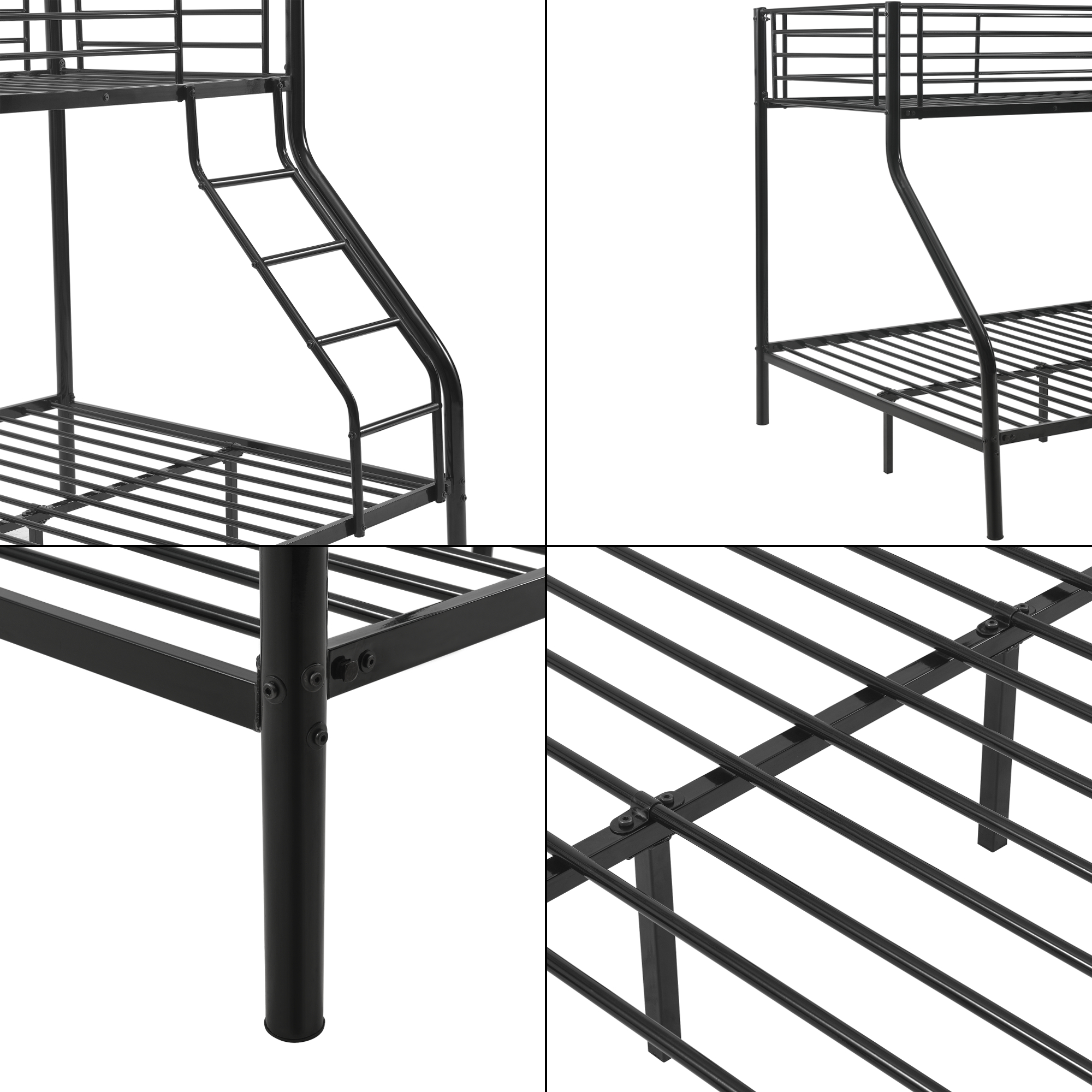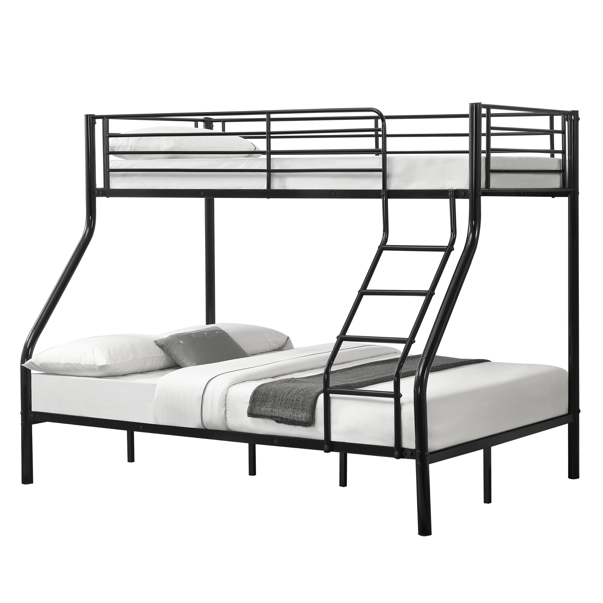 Pat supraetajat metalic Sortland 200x140/90 cm, negru, 3 locuri