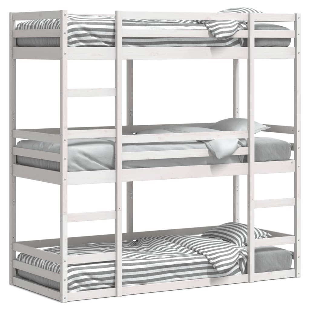 Pat supraetajat triplu, alb, 90x190 cm, lemn masiv de pin GartenMobel Dekor