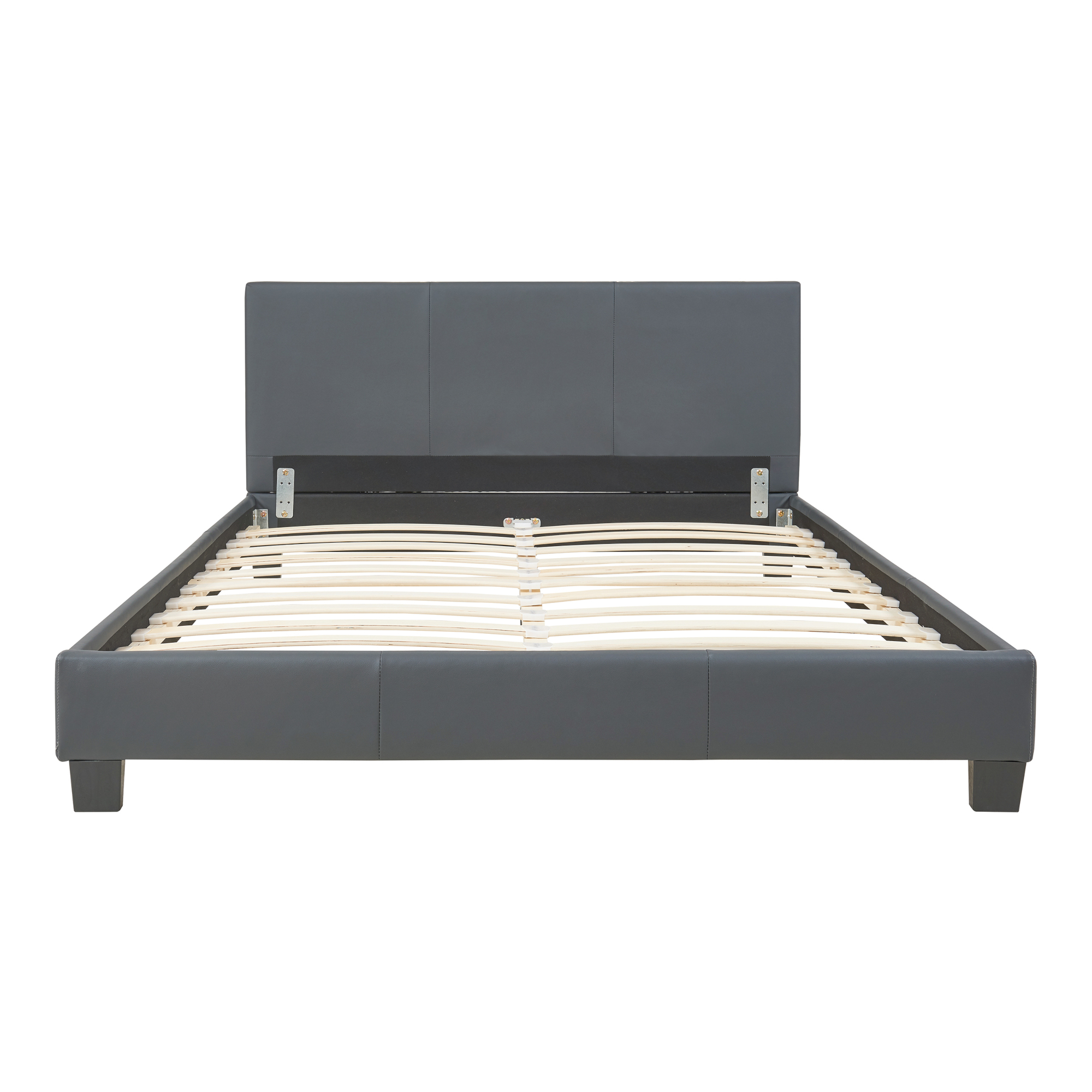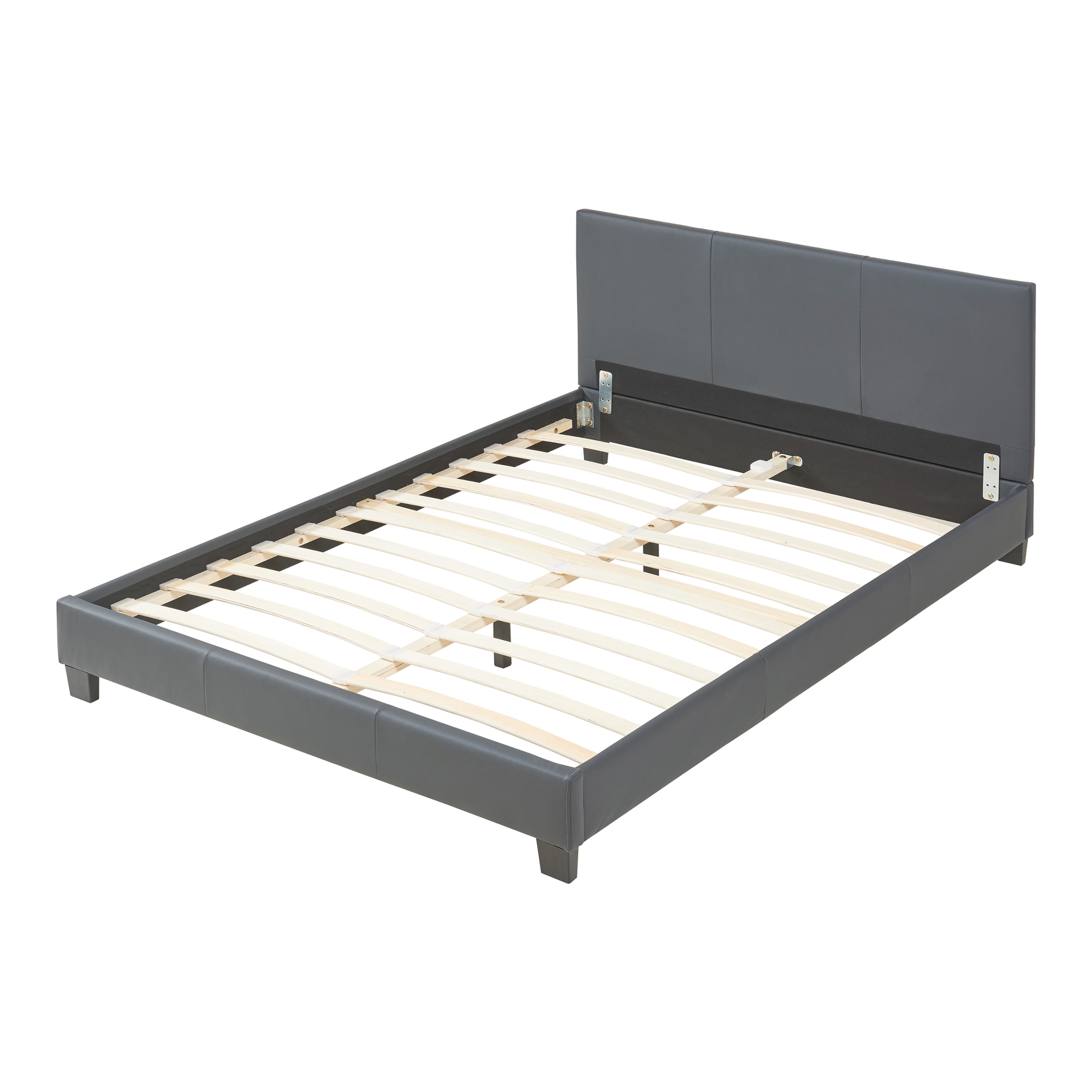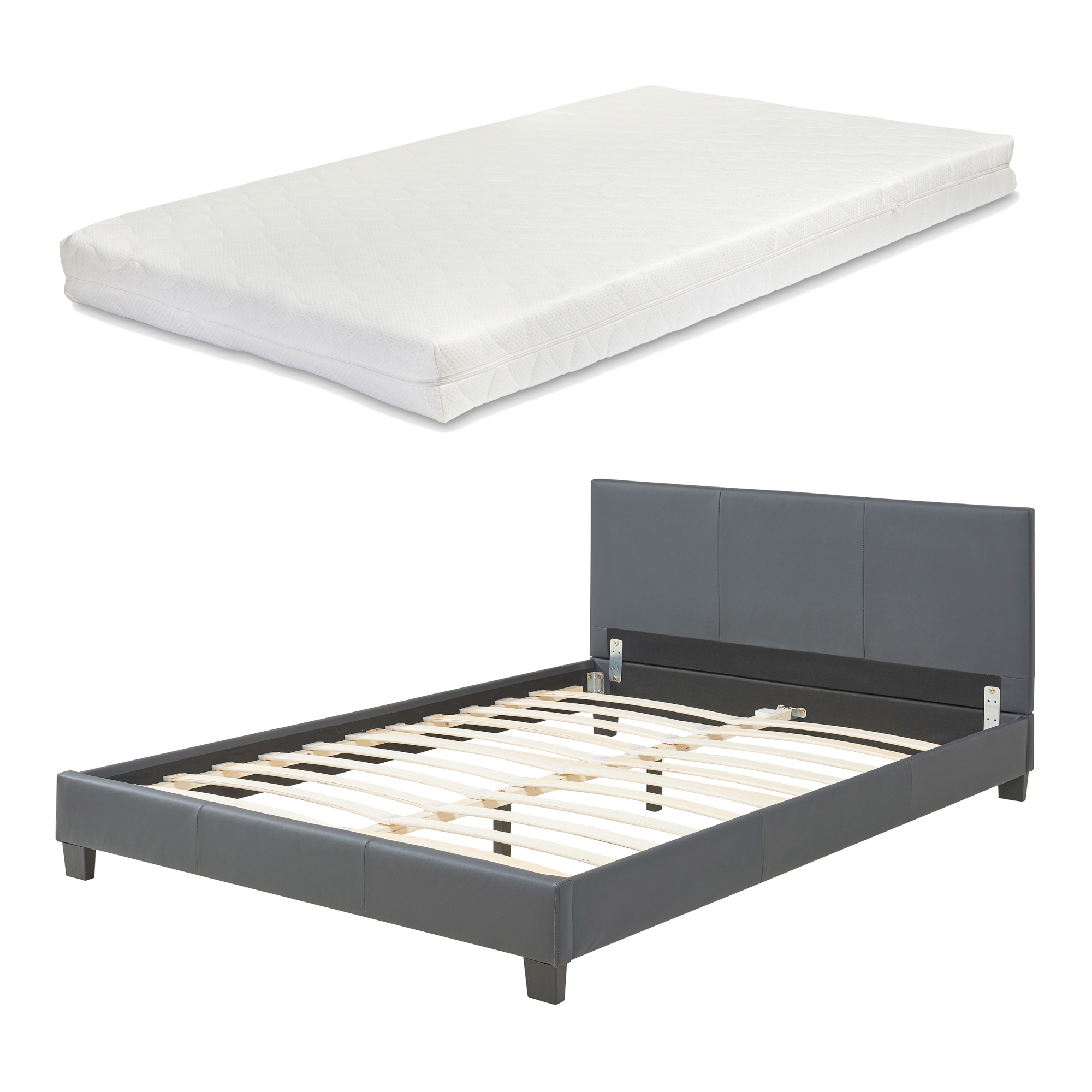 Pat tapitat Albacete 140x200 cm cu saltea, piele ecologică gri închis