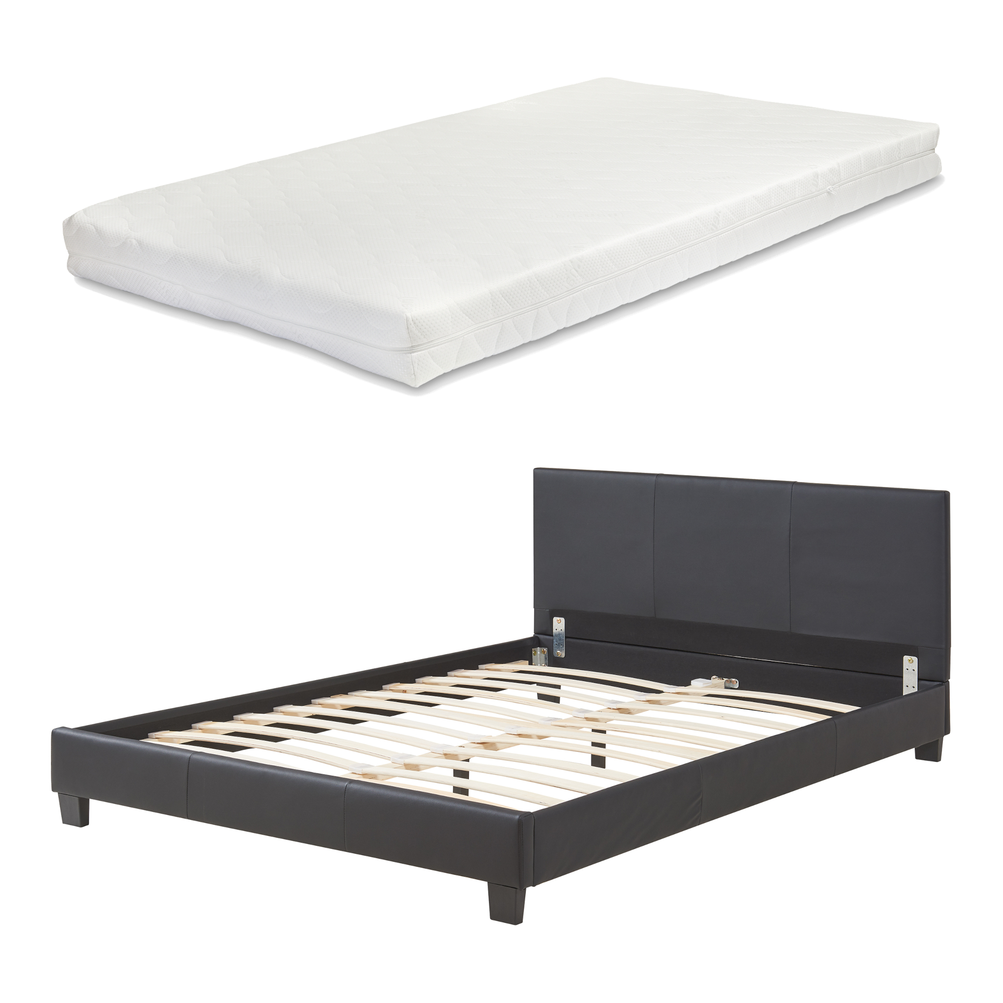 Pat tapițat Albacete cu saltea 140x200 cm, piele ecologică, negru