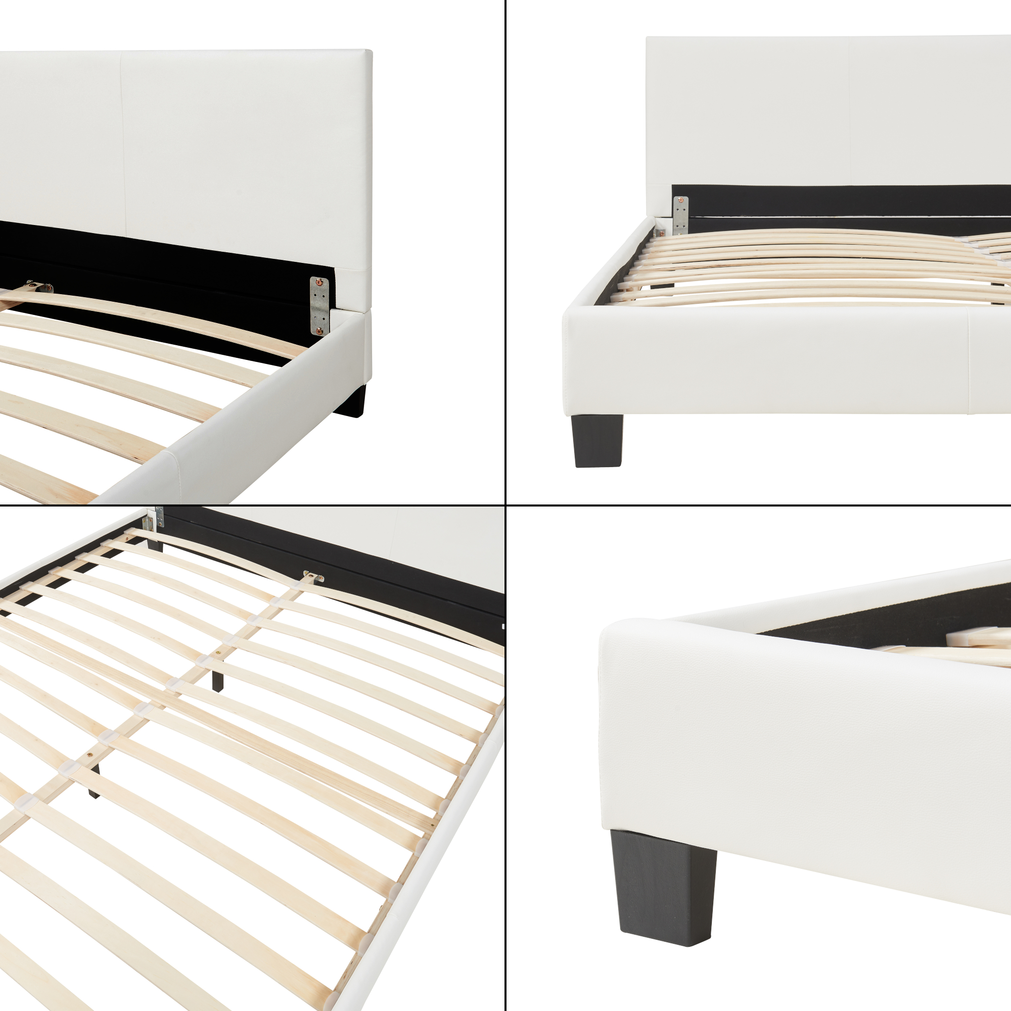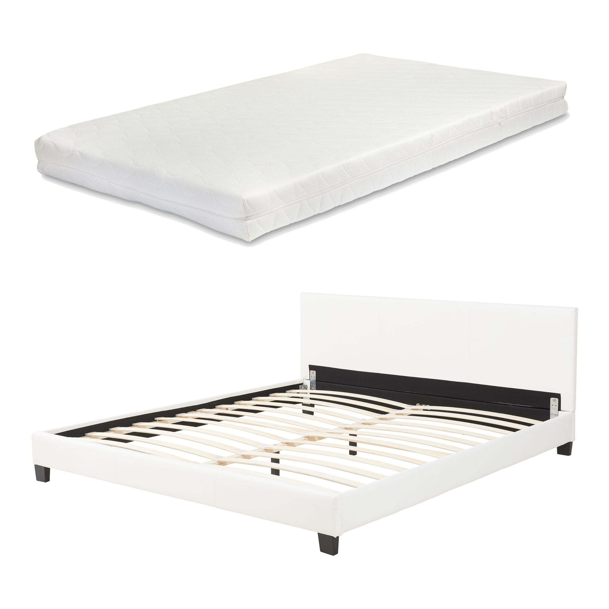 Pat tapitat Albacete cu saltea, piele ecologică, 160x200 cm, alb