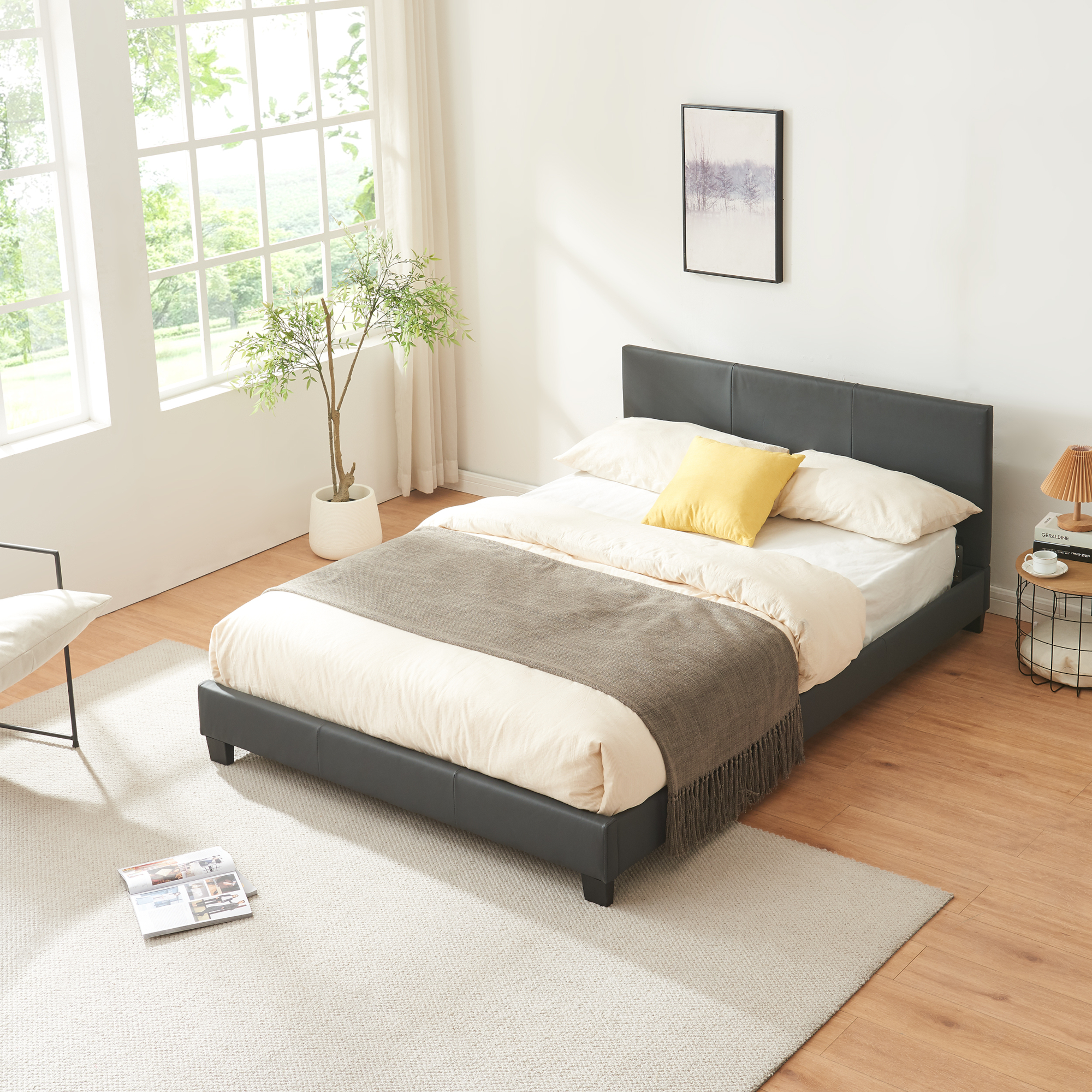 Pat tapițat din piele ecologică Albacete 140x200 cm, gri închis