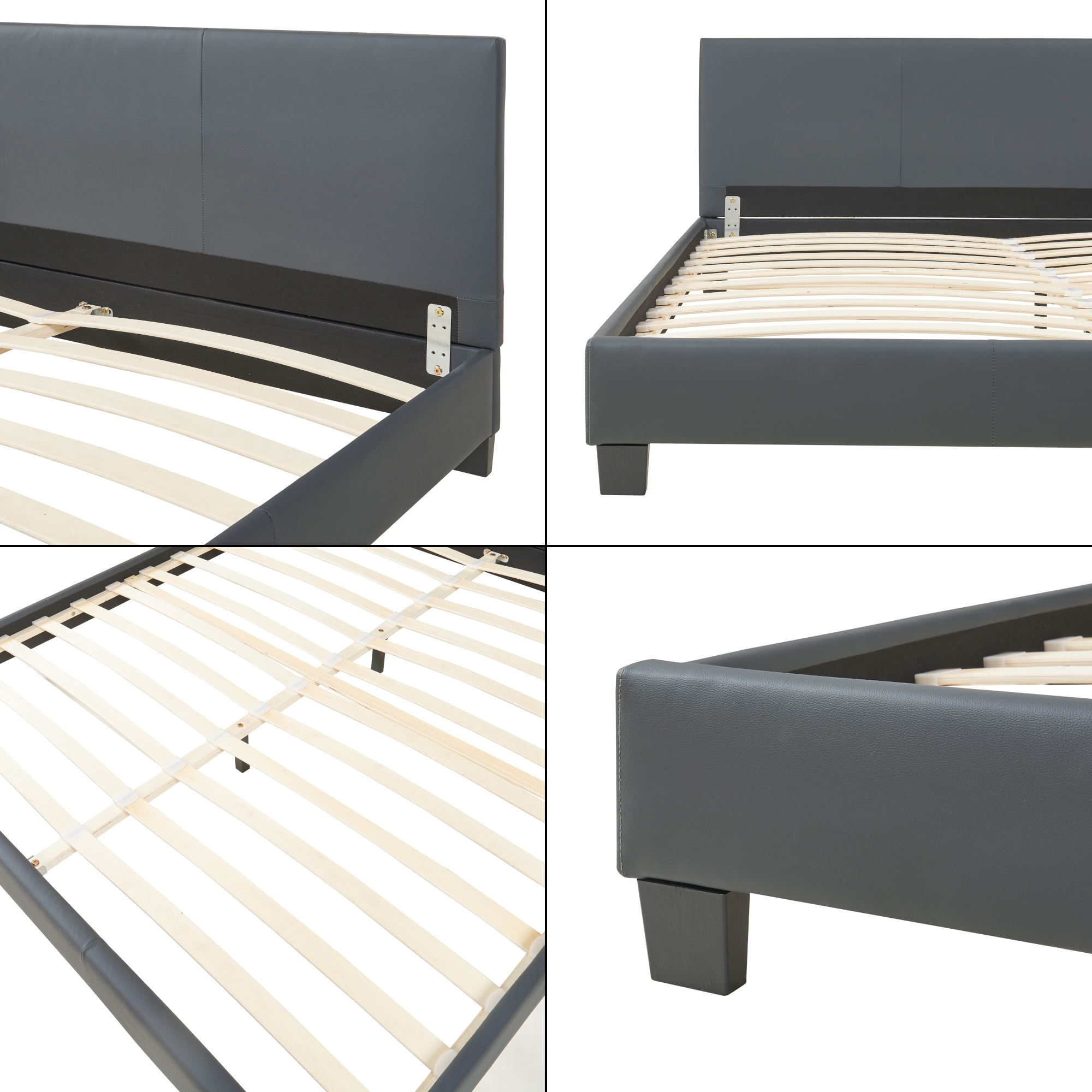 Pat tapitat din piele ecologică Albacete 180x200 cm gri închis