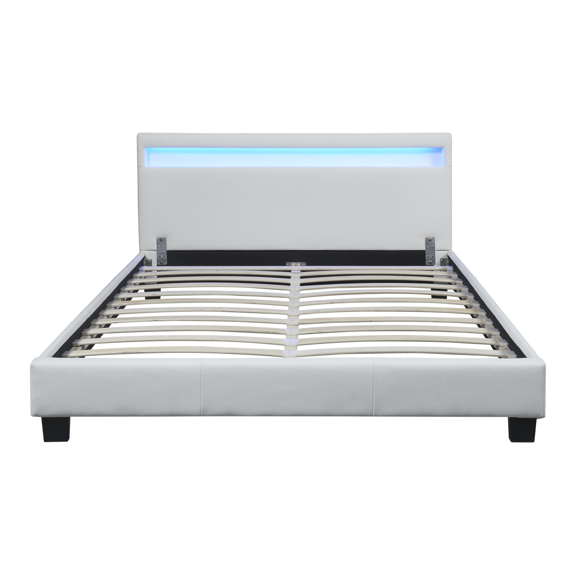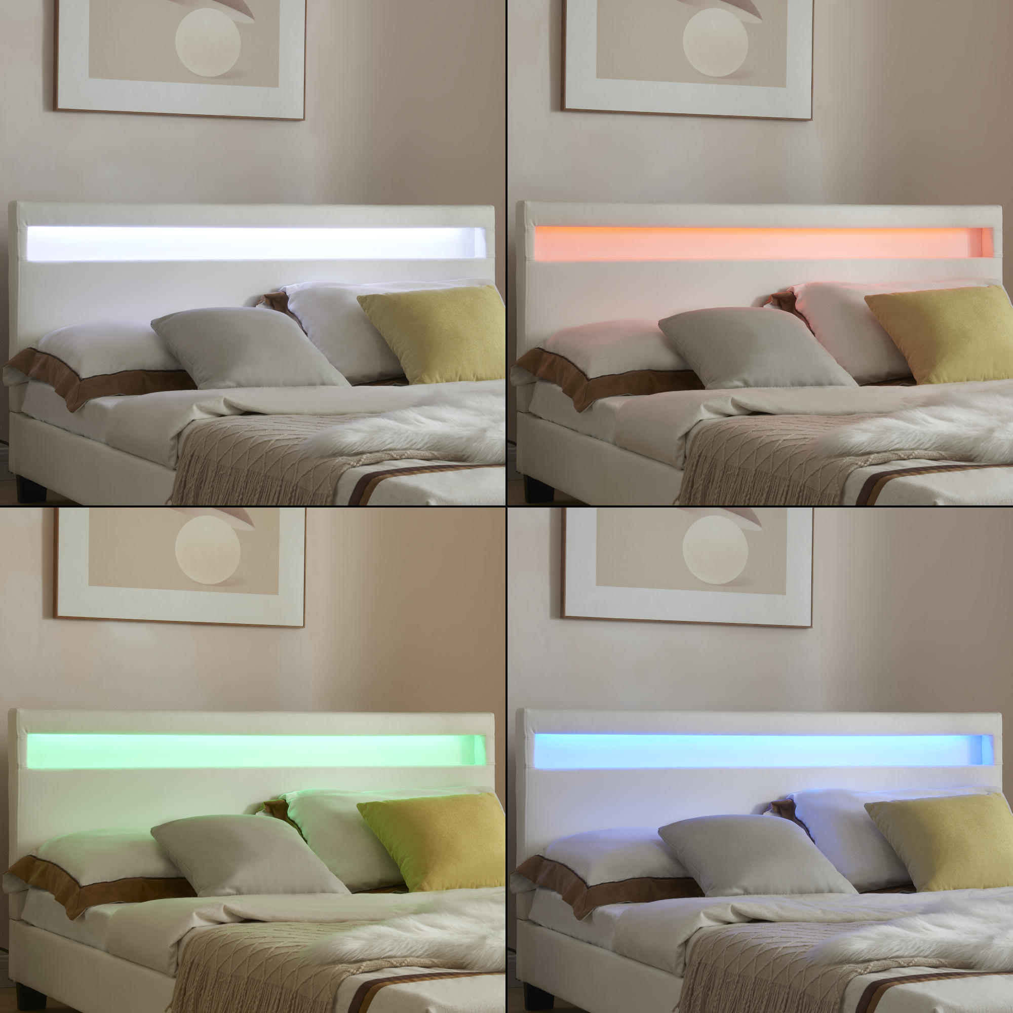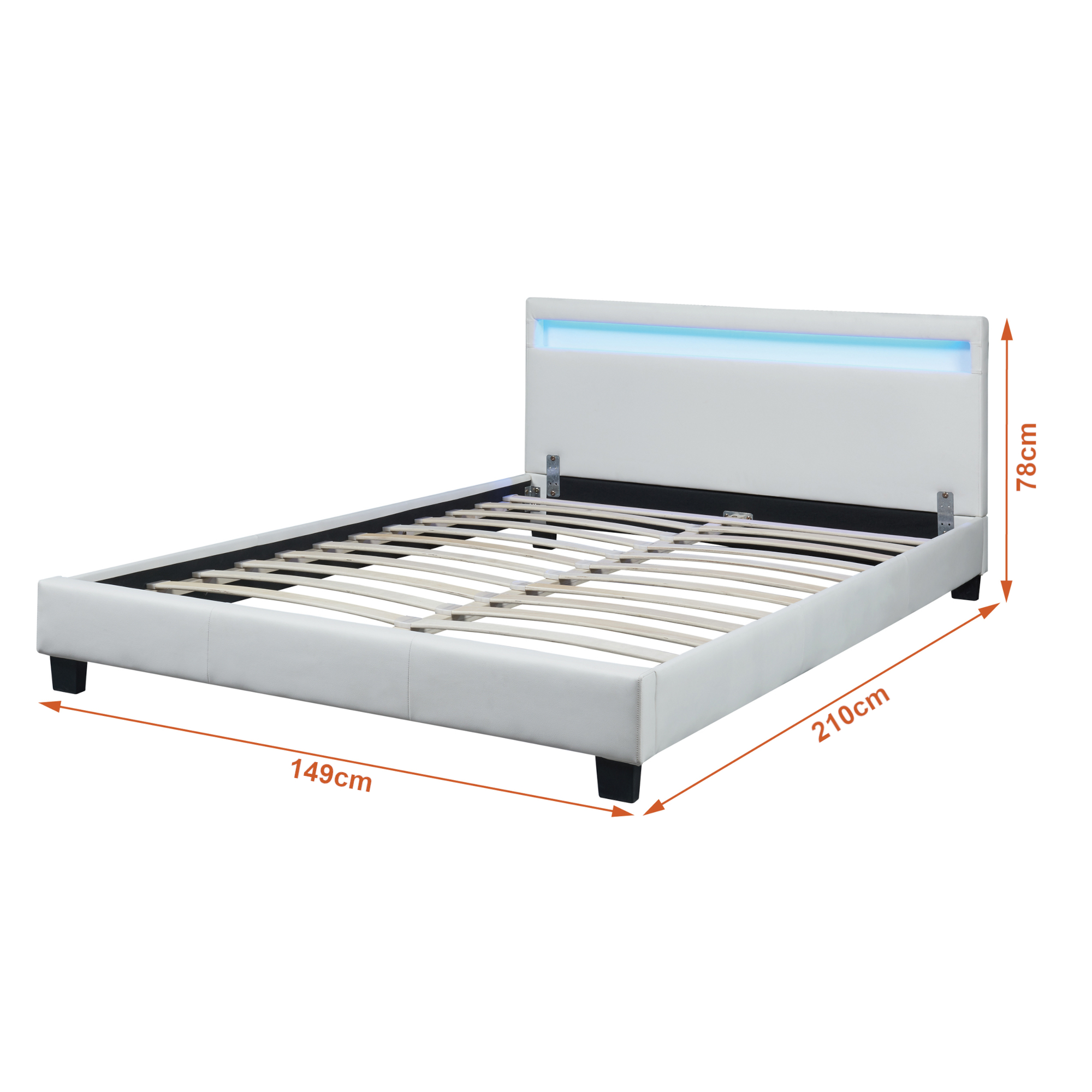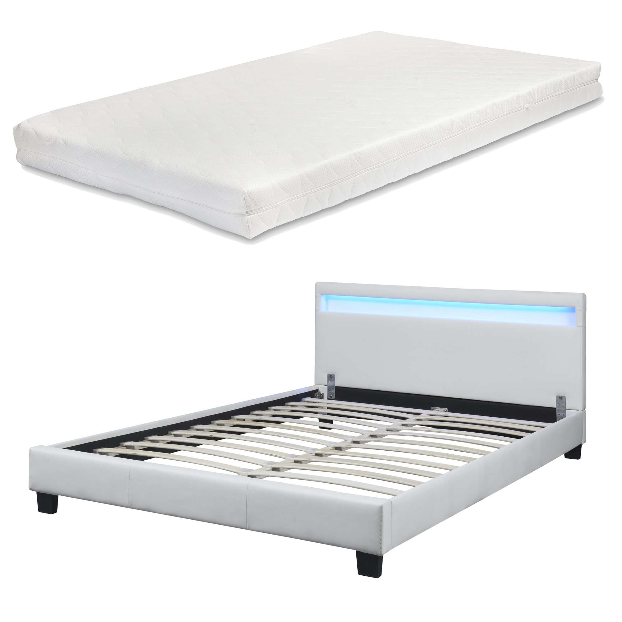 Pat tapițat din piele ecologică cu LED RGB și saltea 140x200 cm alb