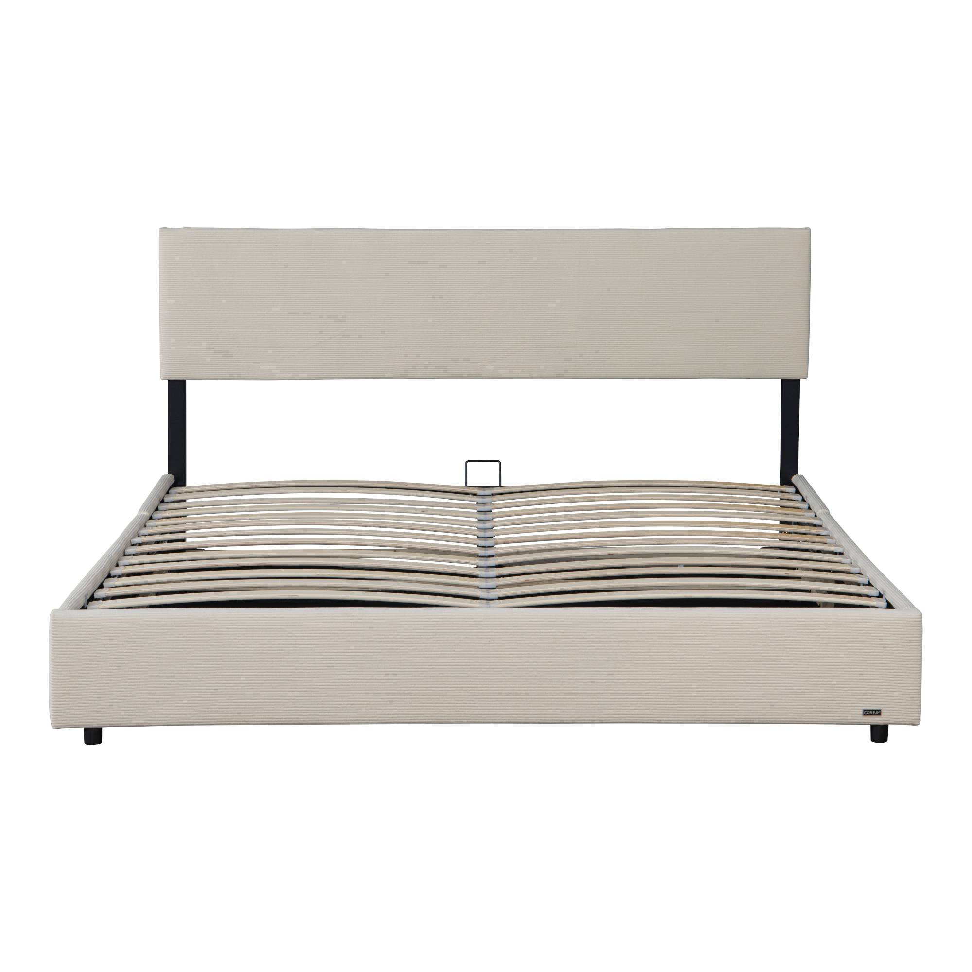 Pat tapitat Juva 140x200 cm bej cu somieră rabatabilă și ladă