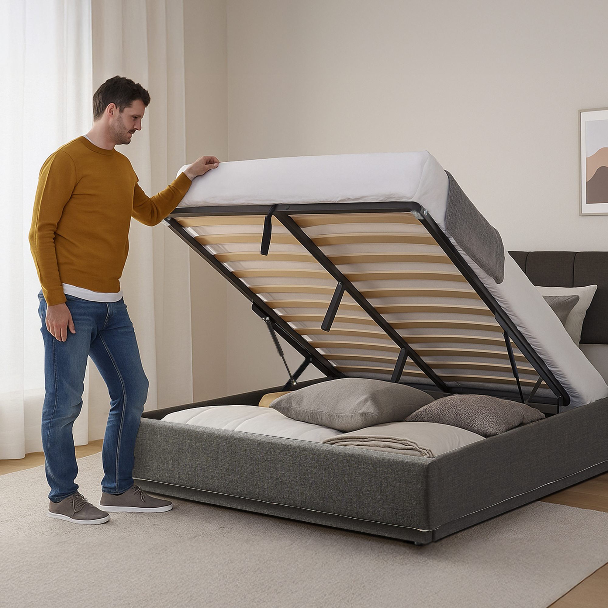 - Ladă de depozitare generoasă sub somiera rabatabilă