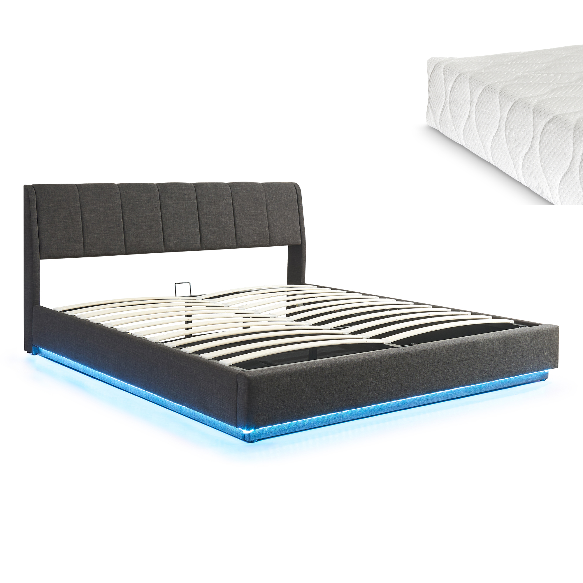 Pat tapițat LED 180x200 cm cu saltea și ladă de depozitare, negru