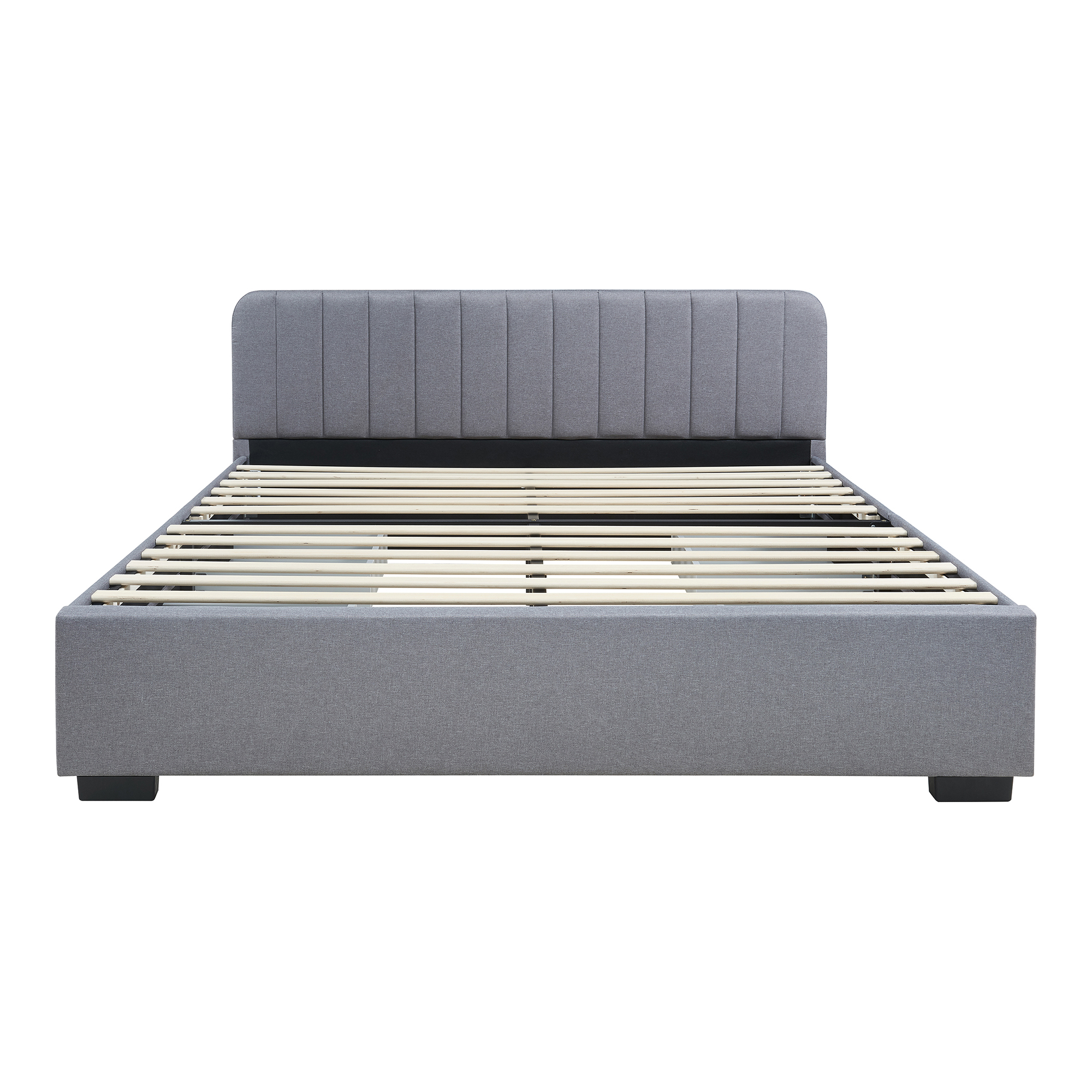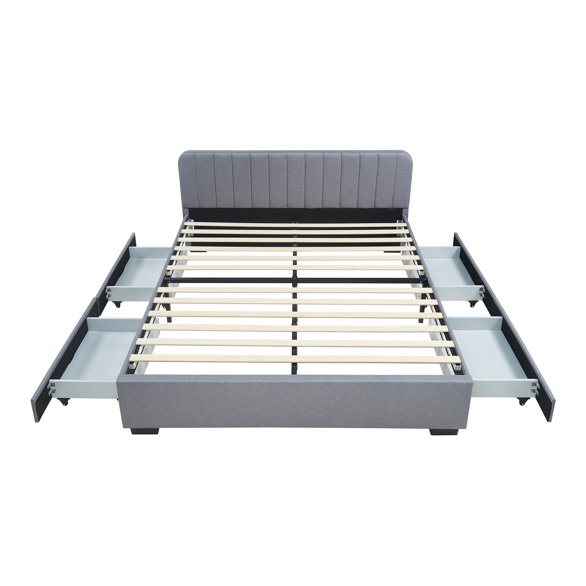 Pat tapițat Nofrenna 140x200 cm cu 4 sertare și somieră, gri