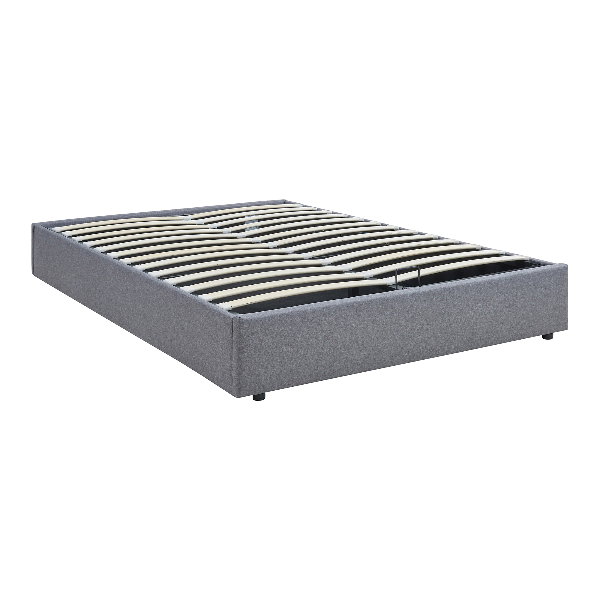 Pe lângă aspectul plăcut, acest pat 140x200 cu ladă de depozitare este și foarte practic. Somiera rabatabilă se ridică ușor cu ajutorul pistoanelor cu gaz și al mânerului integrat, oferind acces rapid la spațiul generos de depozitare de dedesubt. Este o soluție excelentă pentru păstrarea lenjeriei de pat, pernelor sau altor articole utile în dormitor.