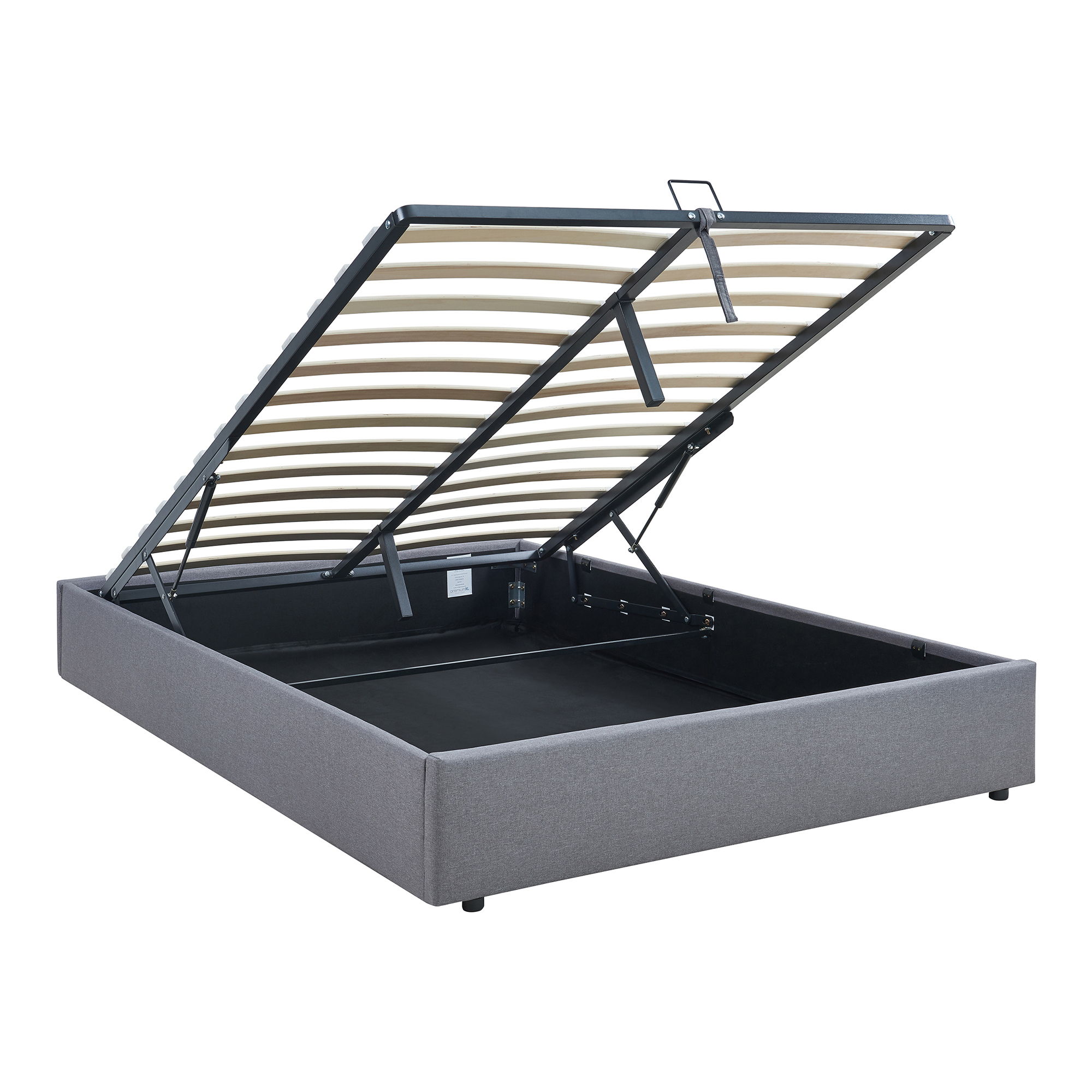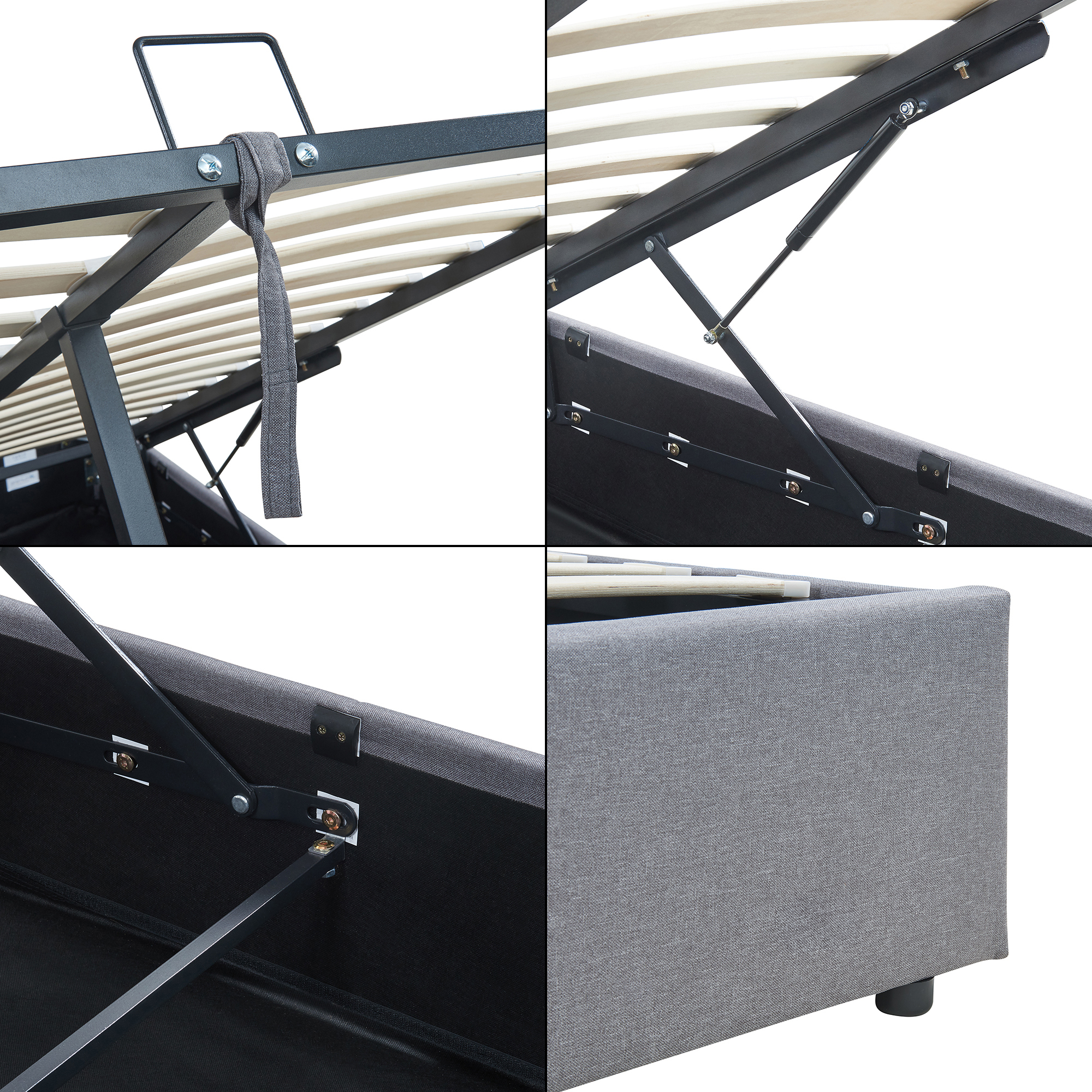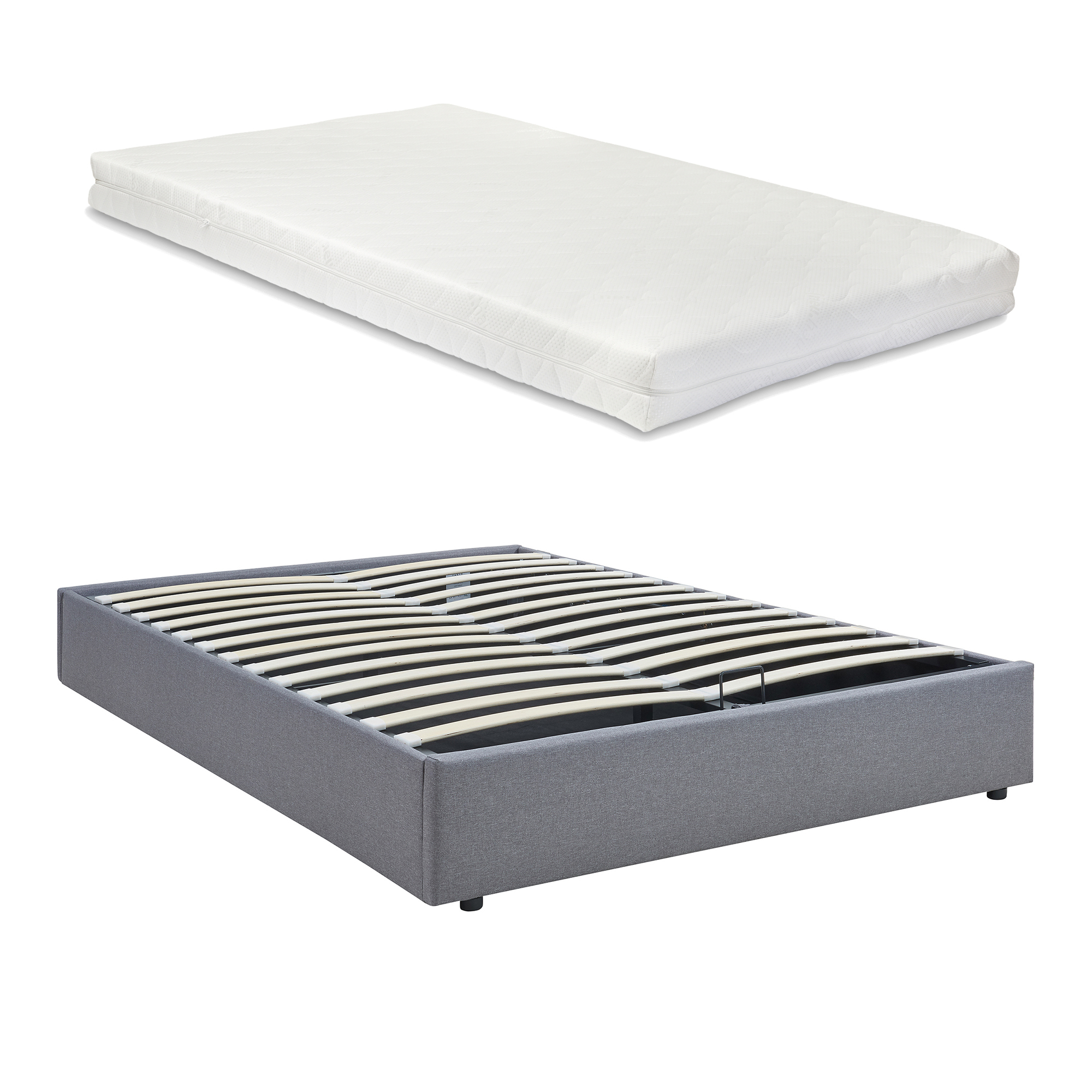 Pat tapițat Nola 140x200 cm cu saltea și ladă de depozitare, gri