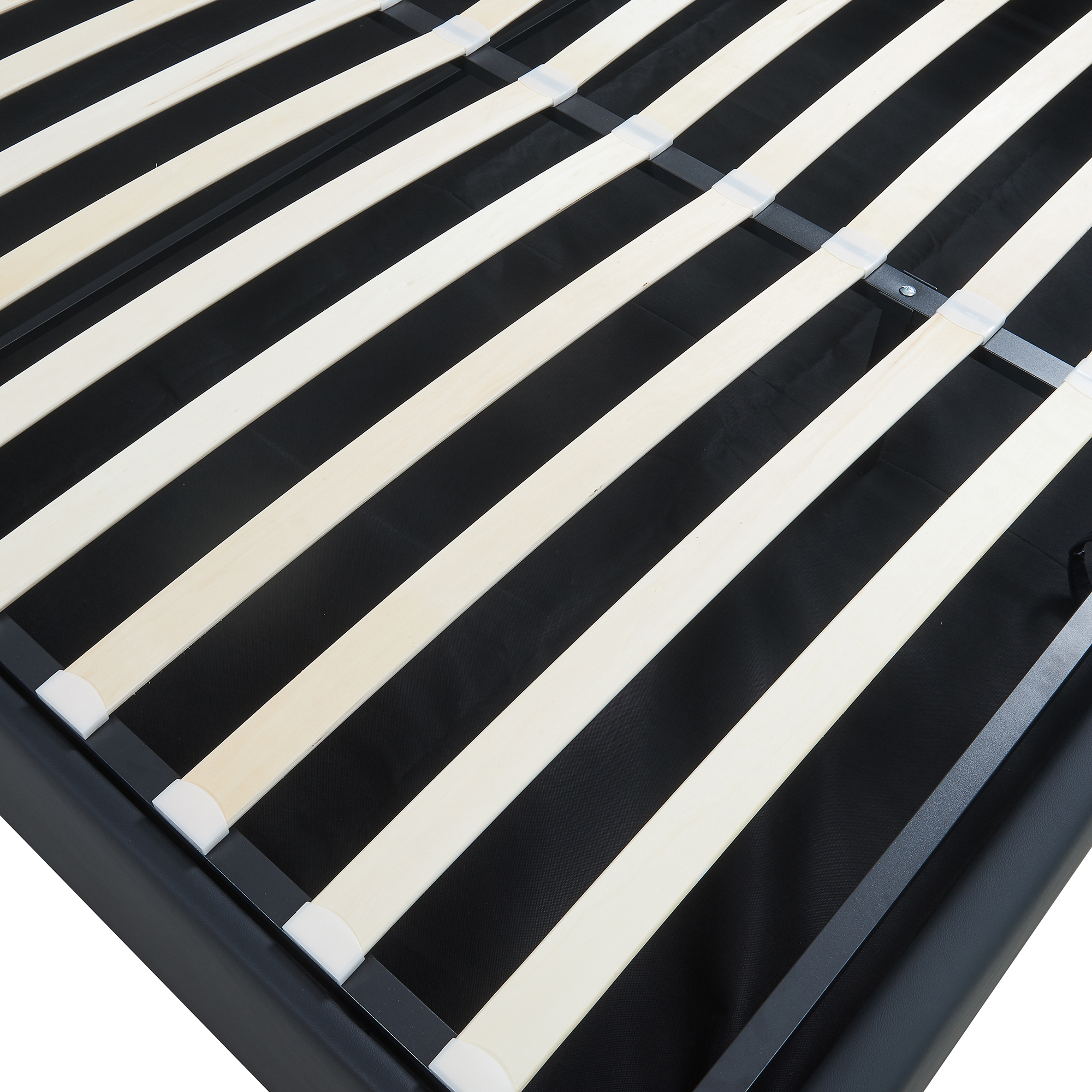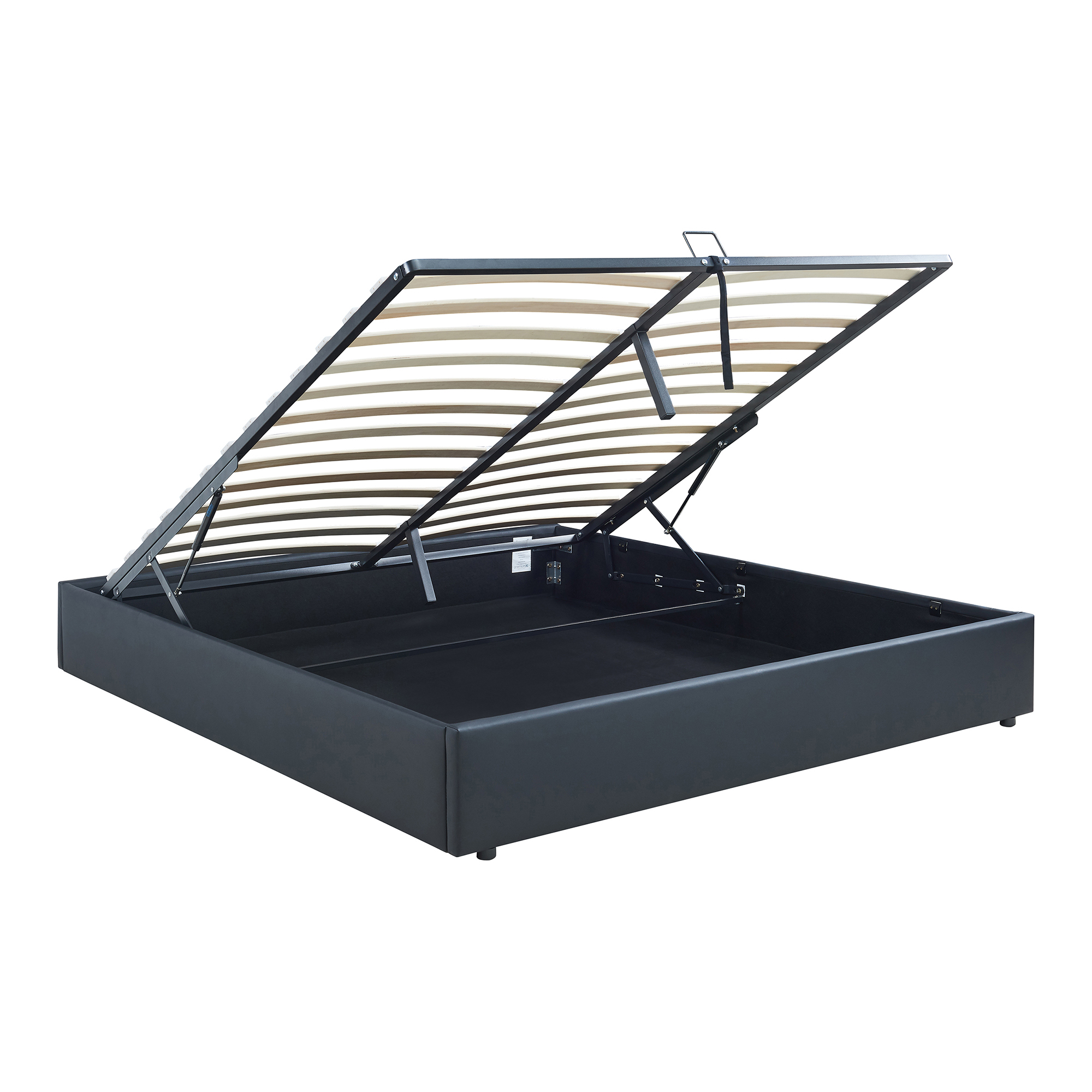Pat tapițat Nola 160x200 cm cu ladă de depozitare, piele ecologică neagră