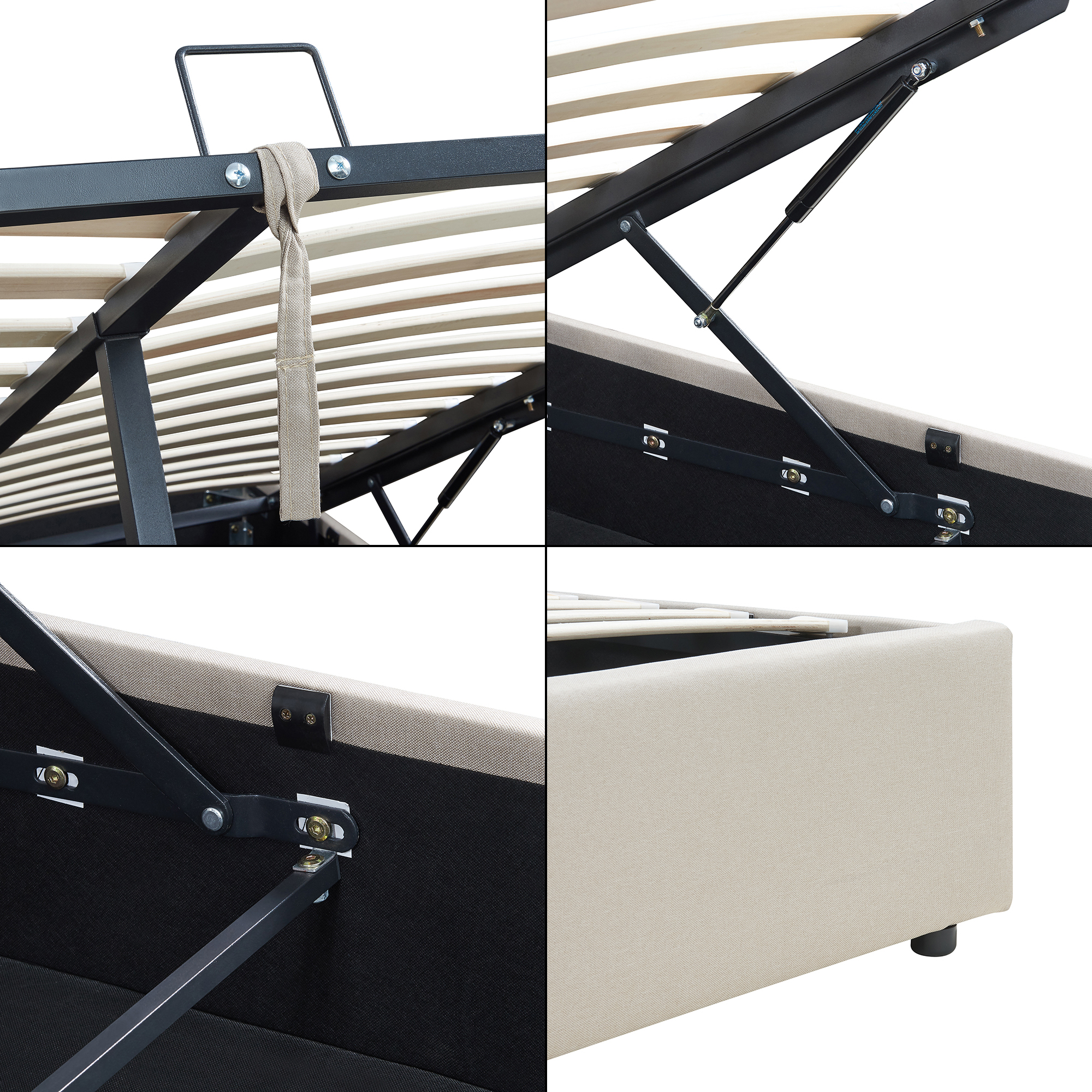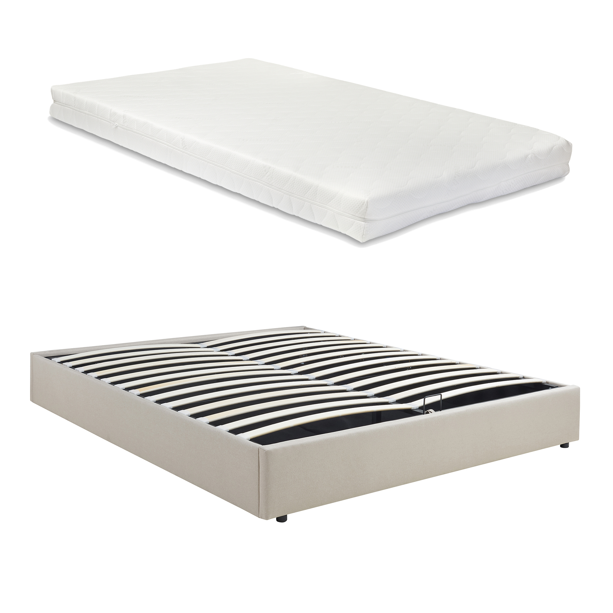 Pat tapițat Nola 160x200 cm cu saltea și ladă de depozitare, bej