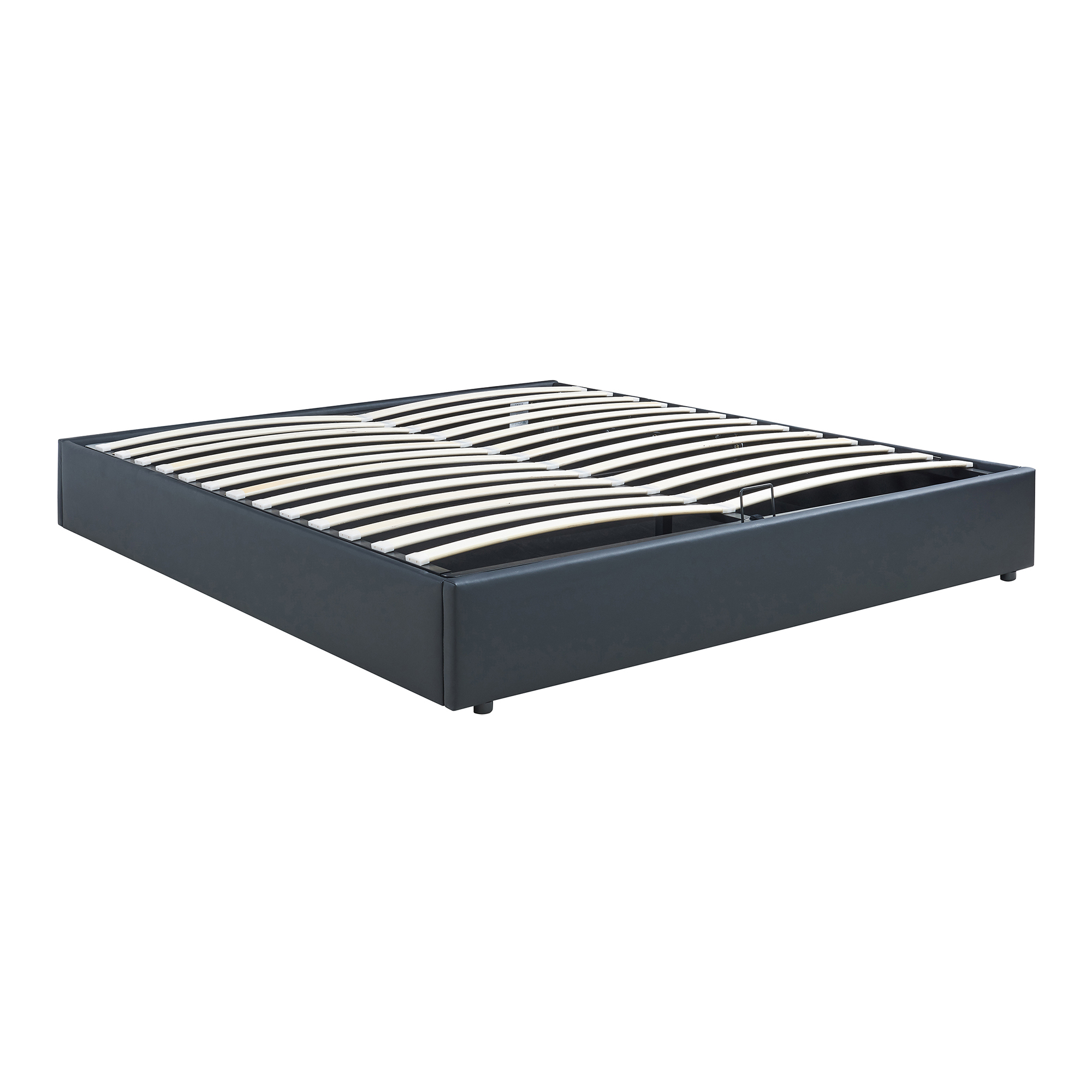 Pat tapițat Nola 180x200 cm cu ladă de depozitare, piele ecologică neagră
