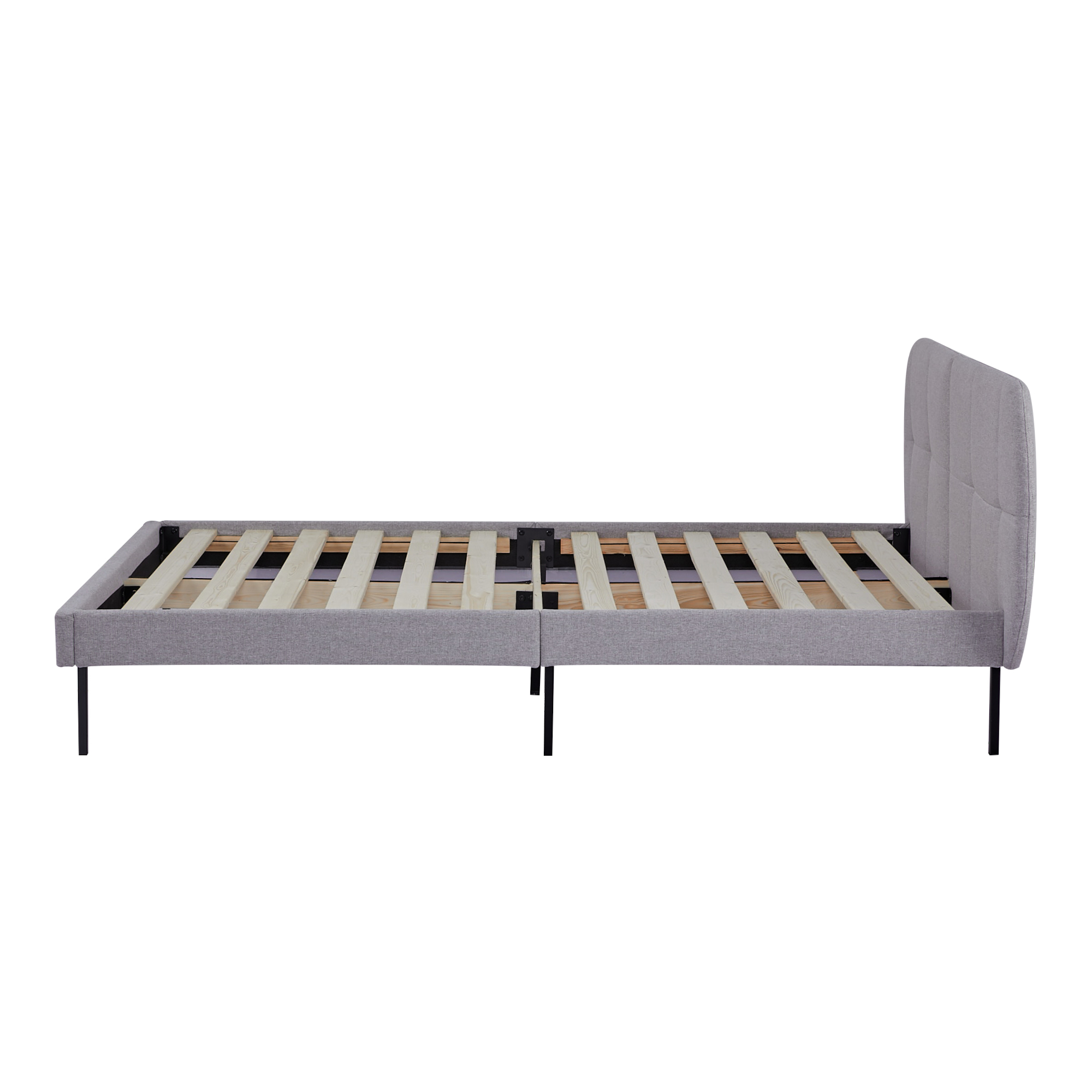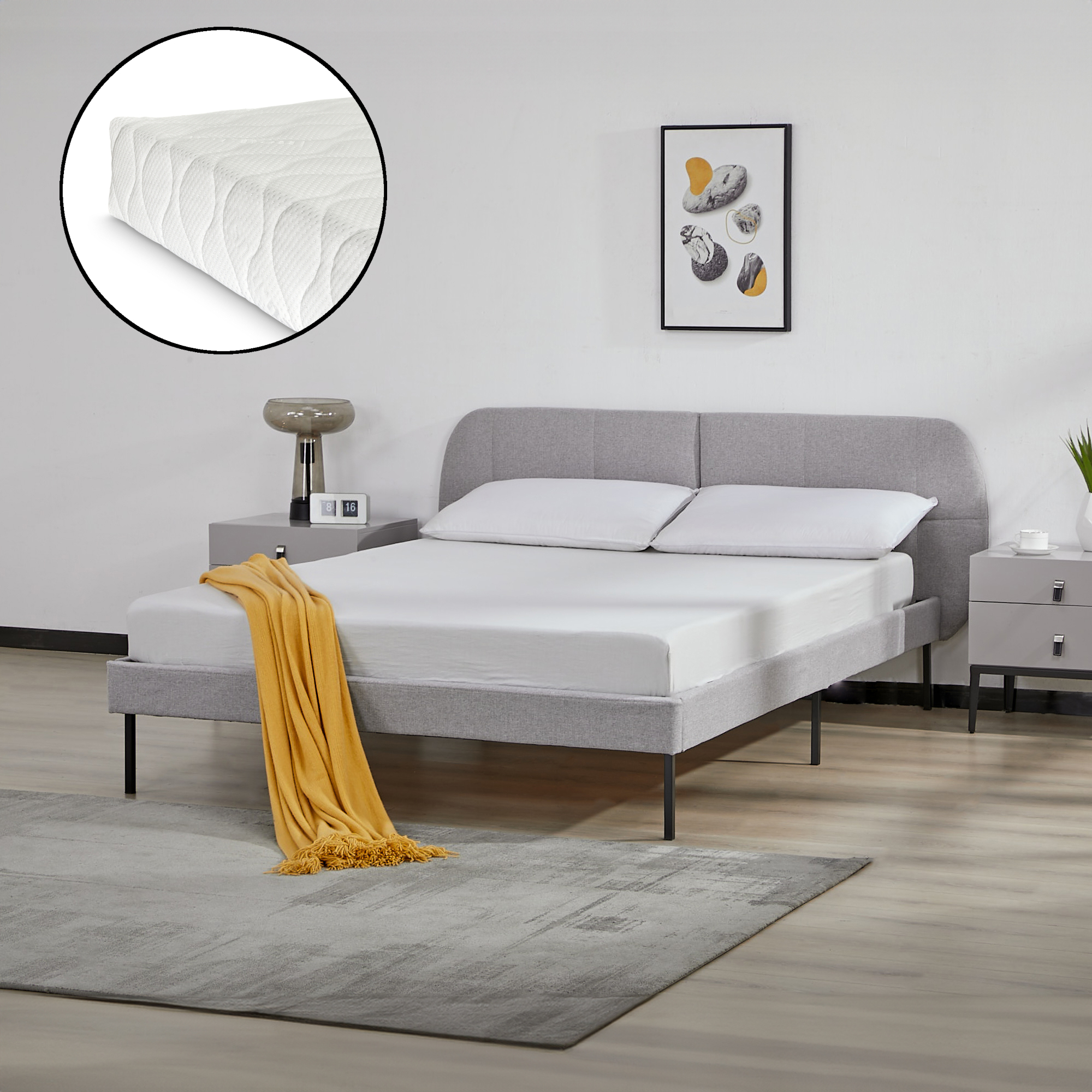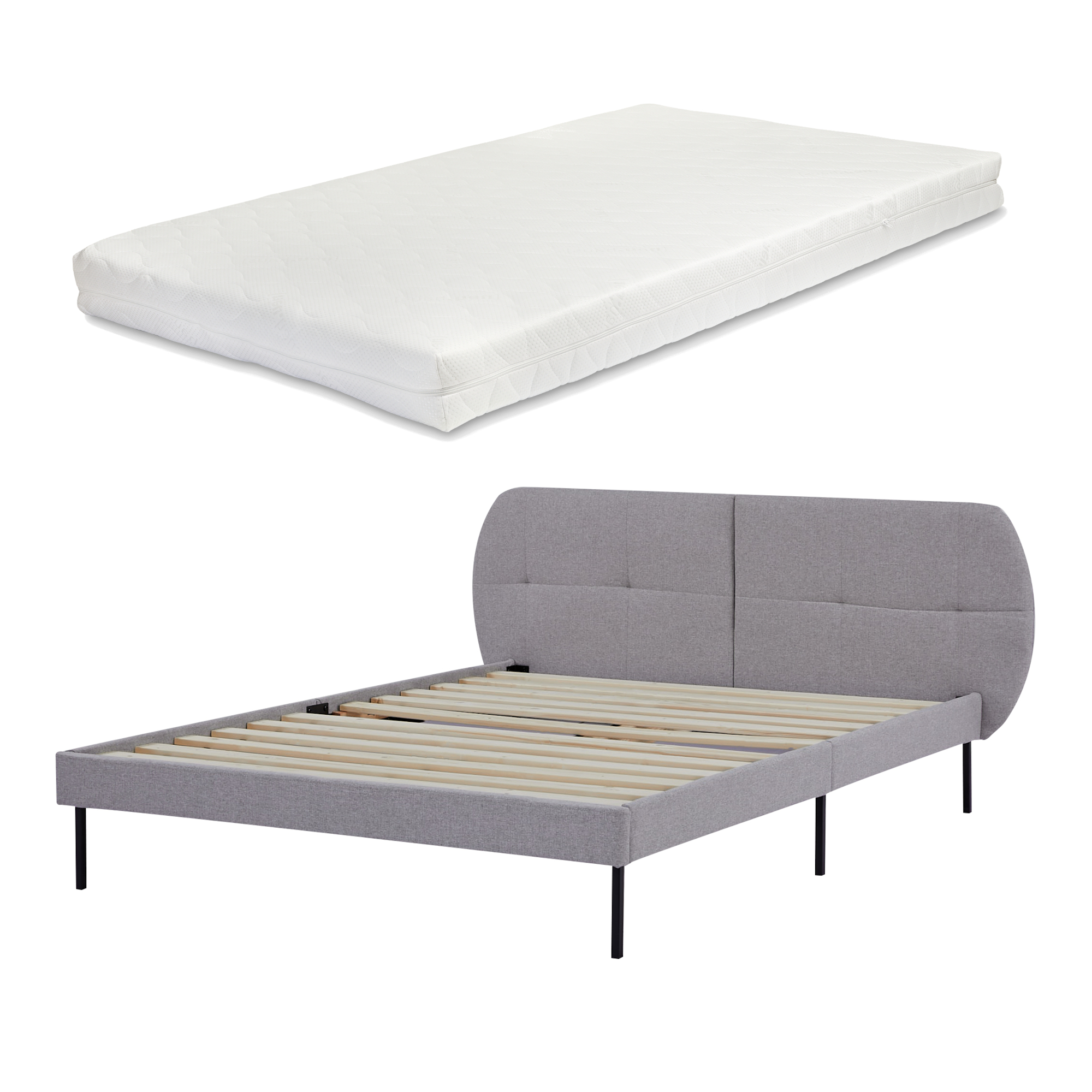 Pat tapițat Porvoo 140x200 cm cu saltea inclusă, textil gri