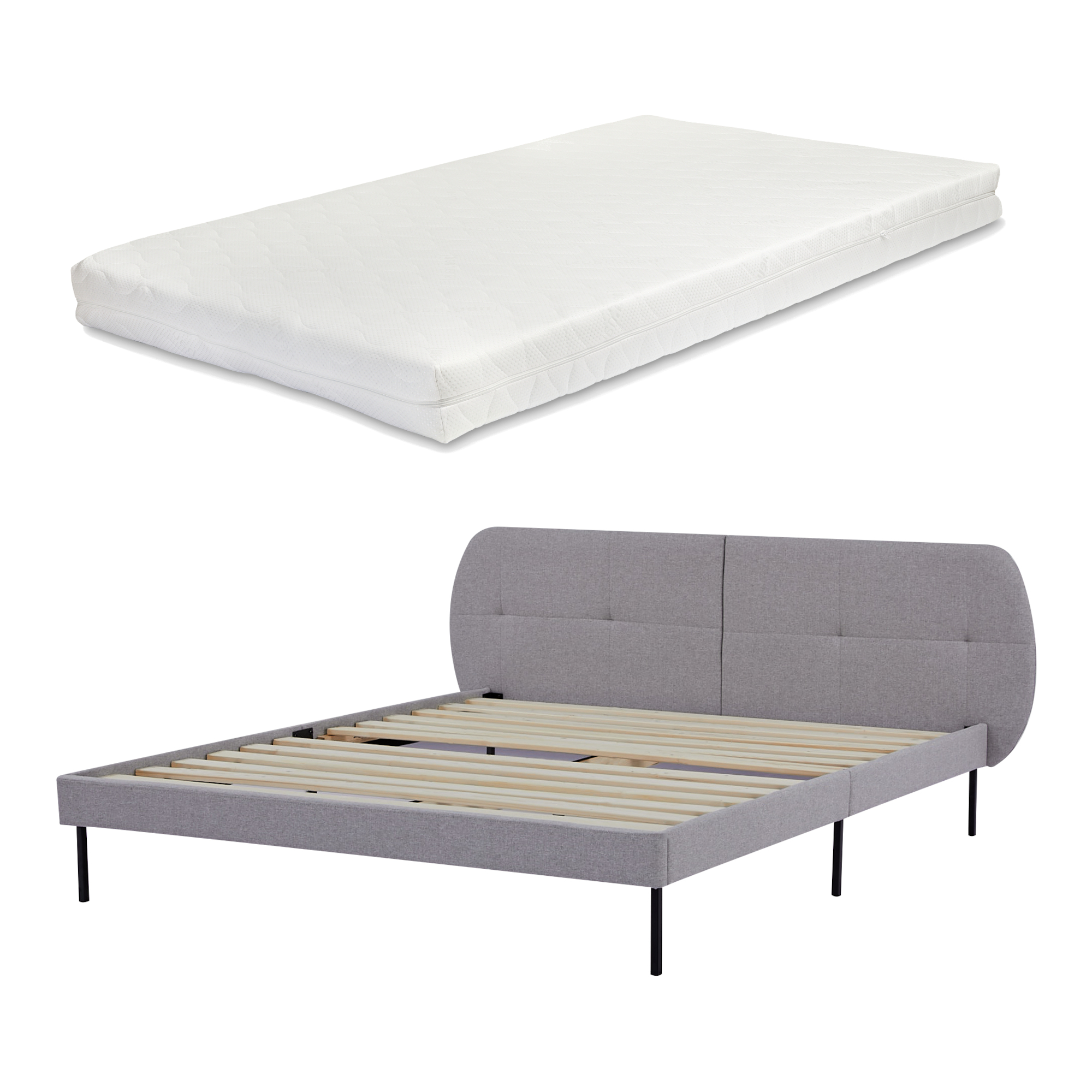 Pat tapițat Porvoo cu saltea 160x200 cm, textil gri, [en.casa]