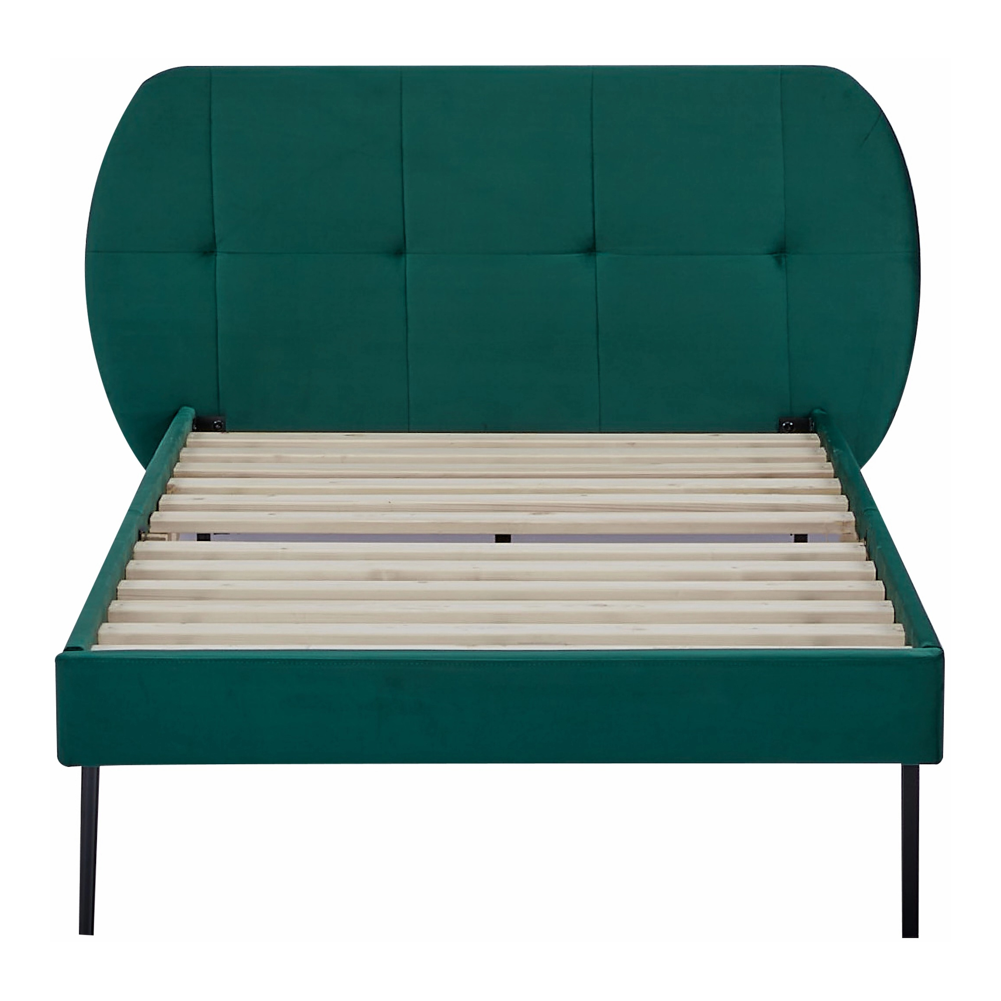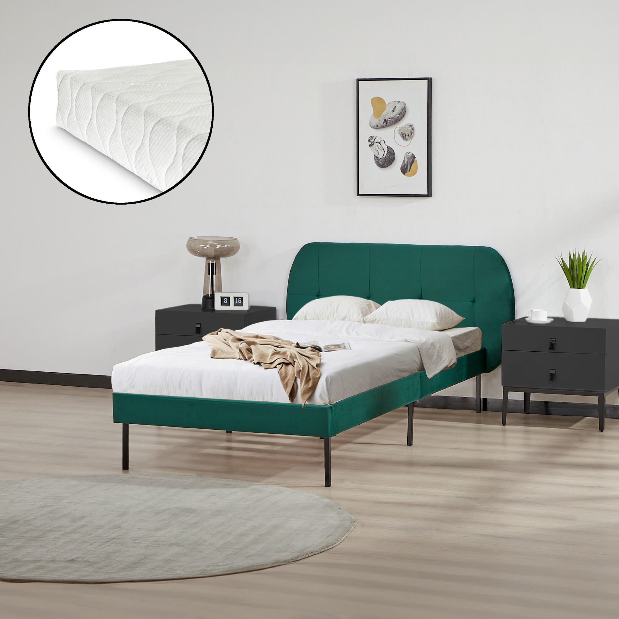 Pat tapițat Porvoo cu saltea 90x200 cm, catifea verde închis