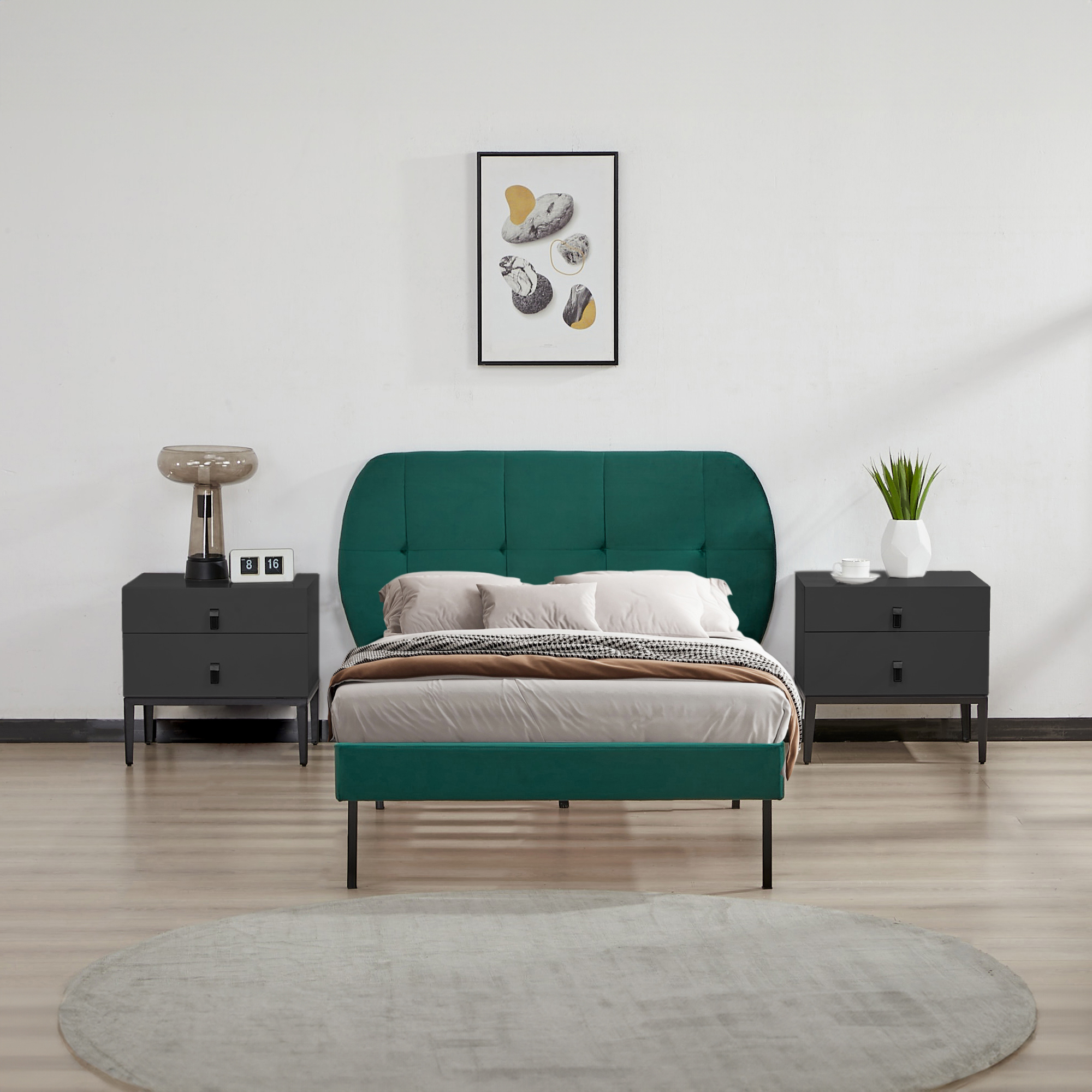 Pat tapițat cu saltea 90x200 cm – alegerea ideală pentru un dormitor modern, confortabil și primitor. Acest pat tapițat în nuanță verde închis impresionează prin designul elegant, tapițeria cu aspect rafinat de catifea și tăblia moale, perfectă pentru momentele de relaxare de dinainte de somn.