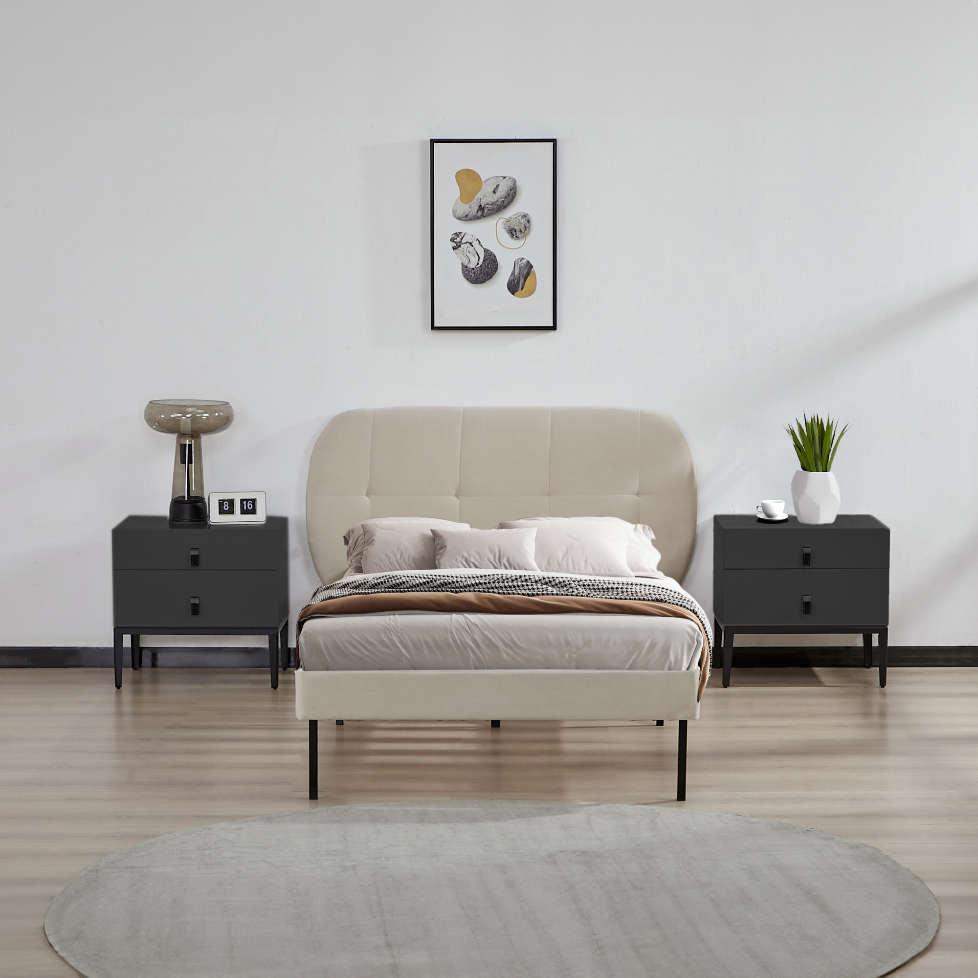 Patul tapitat Porvoo cu saltea inclusă este alegerea ideală pentru un dormitor primitor, elegant și practic. Cu un design modern, linii simple și finisaj textil tip catifea în nuanță bej, acest pat tapitat 90x200 se integrează ușor în amenajări contemporane, minimaliste sau scandinave.