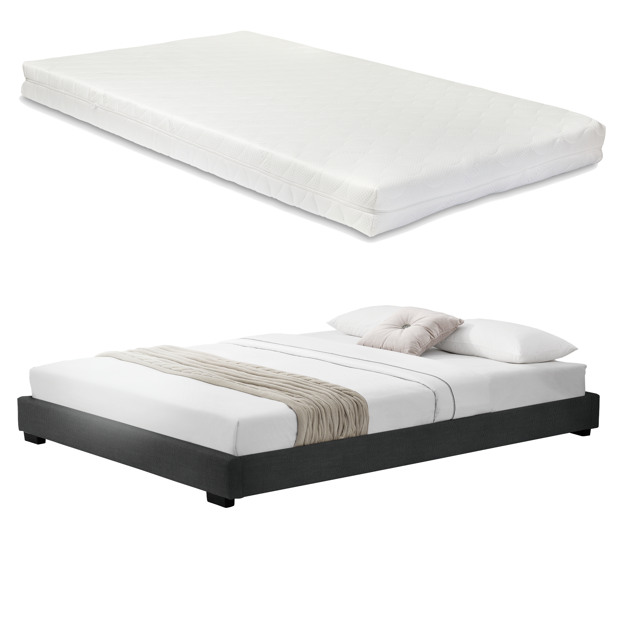 Pat tapițat Solingen din piele ecologică cu saltea 140x200 cm, negru